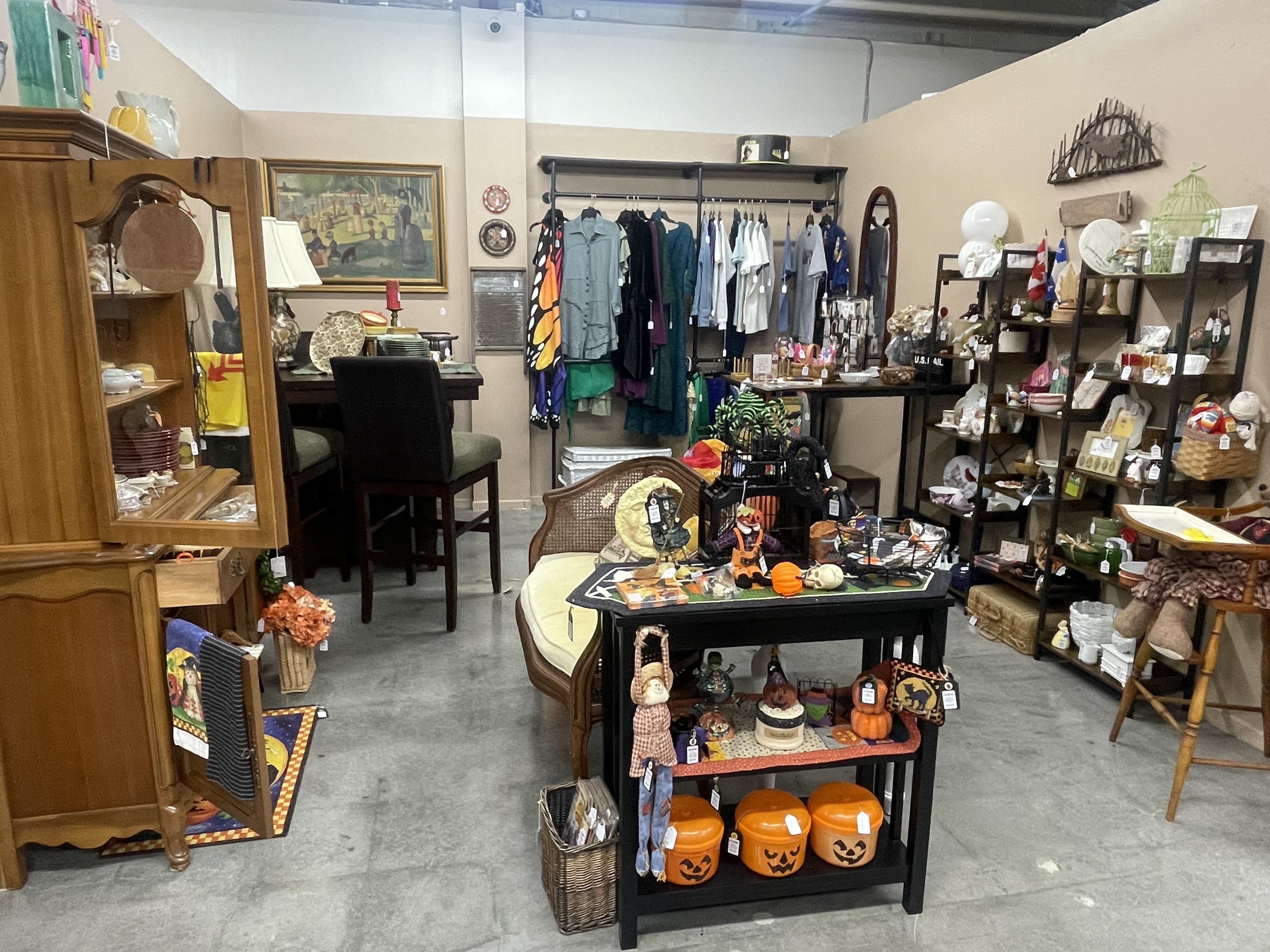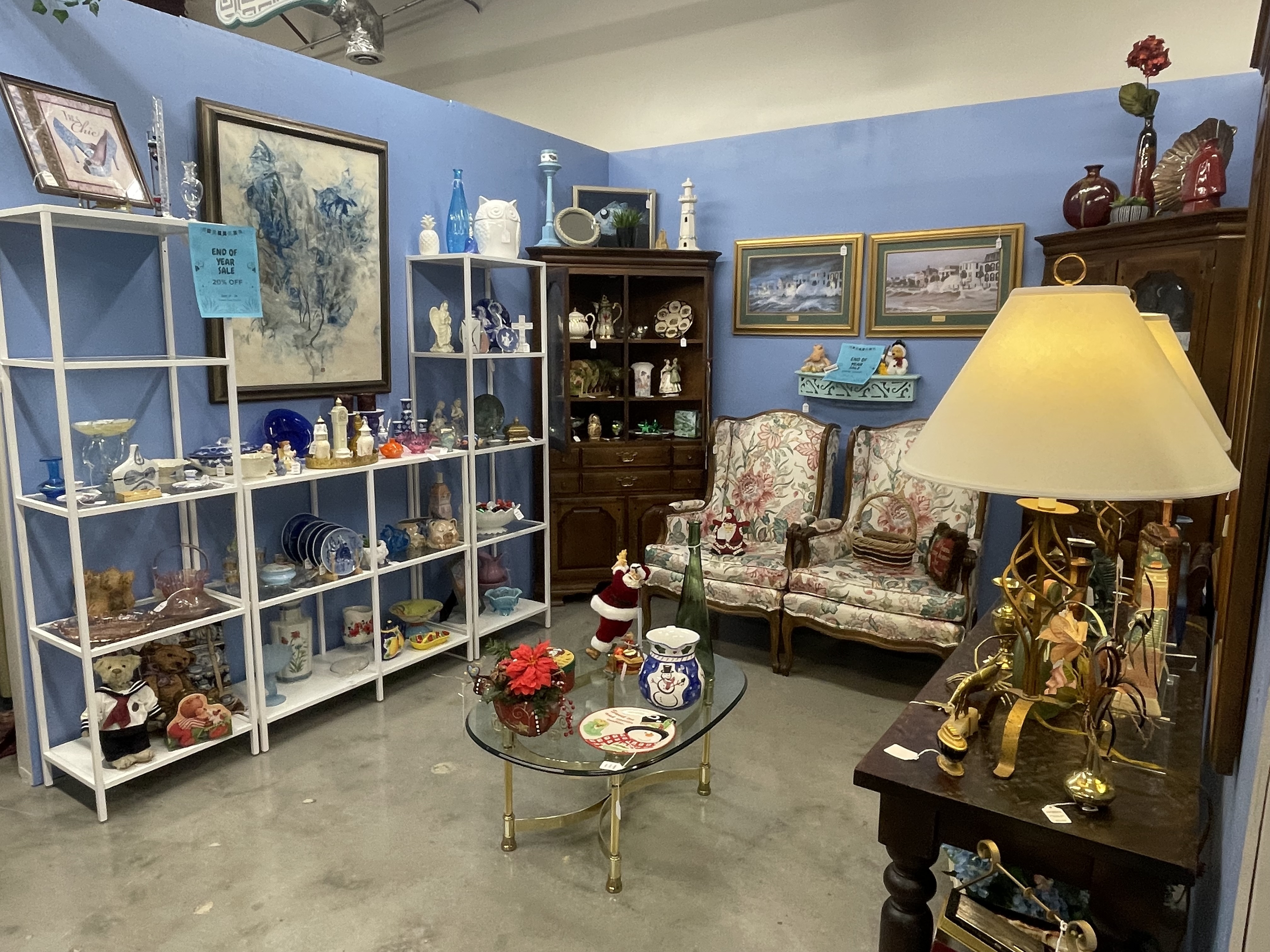 Booth has everything from collectible teapots and Corning Ware to sports memorabilia and cozy furniture