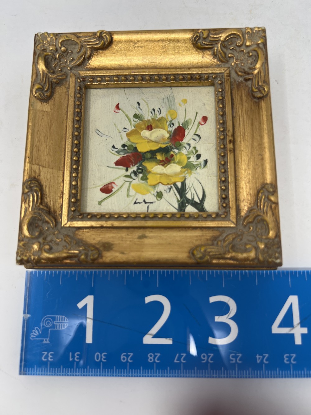 Mini Impressionist Floral Oil Painting; approx 3.5” x 3.5” x .25”
