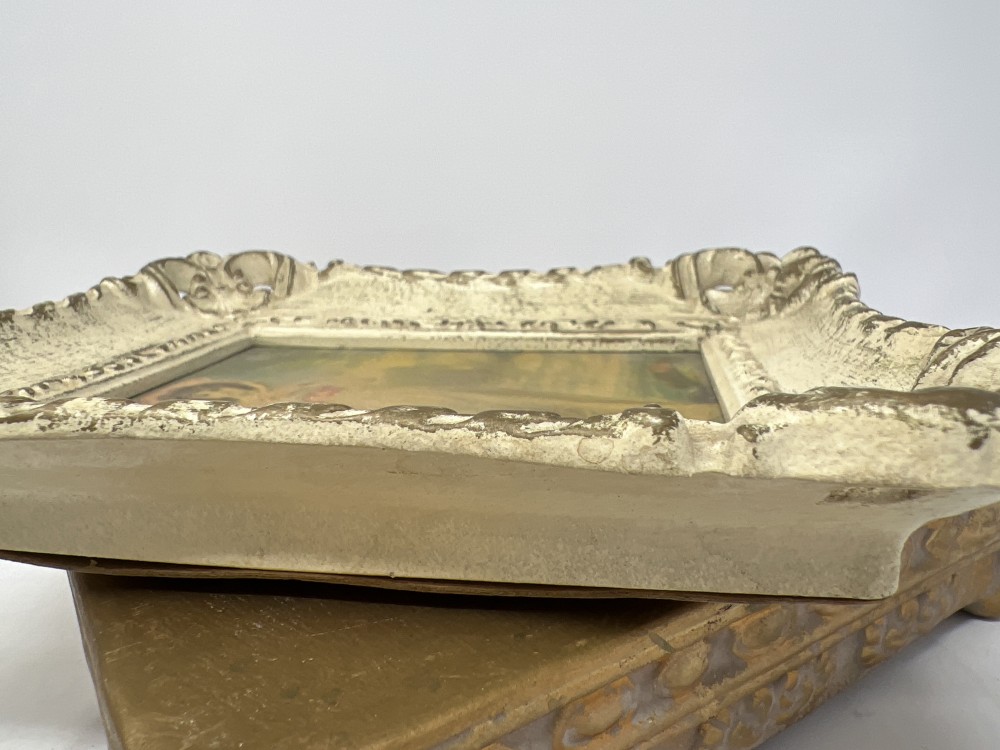 MCM “Pinkie" by Thomas Lawrence Print in Vintage Frame approx 7” tall x 6” wide; Ornate lightweight resin frame; Made by TMC Chicago; includes original hanger hardware; vintage wear as shown in photos