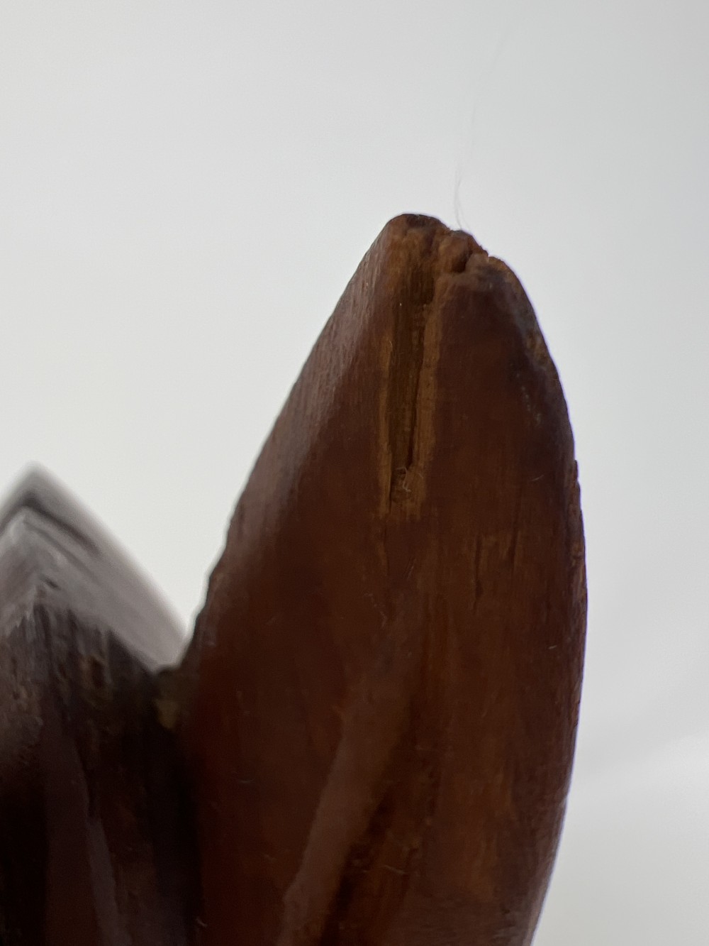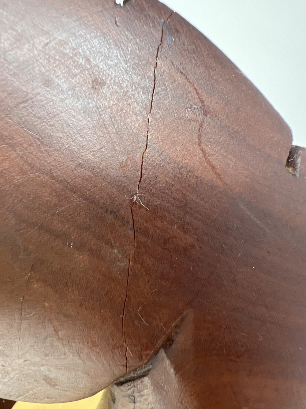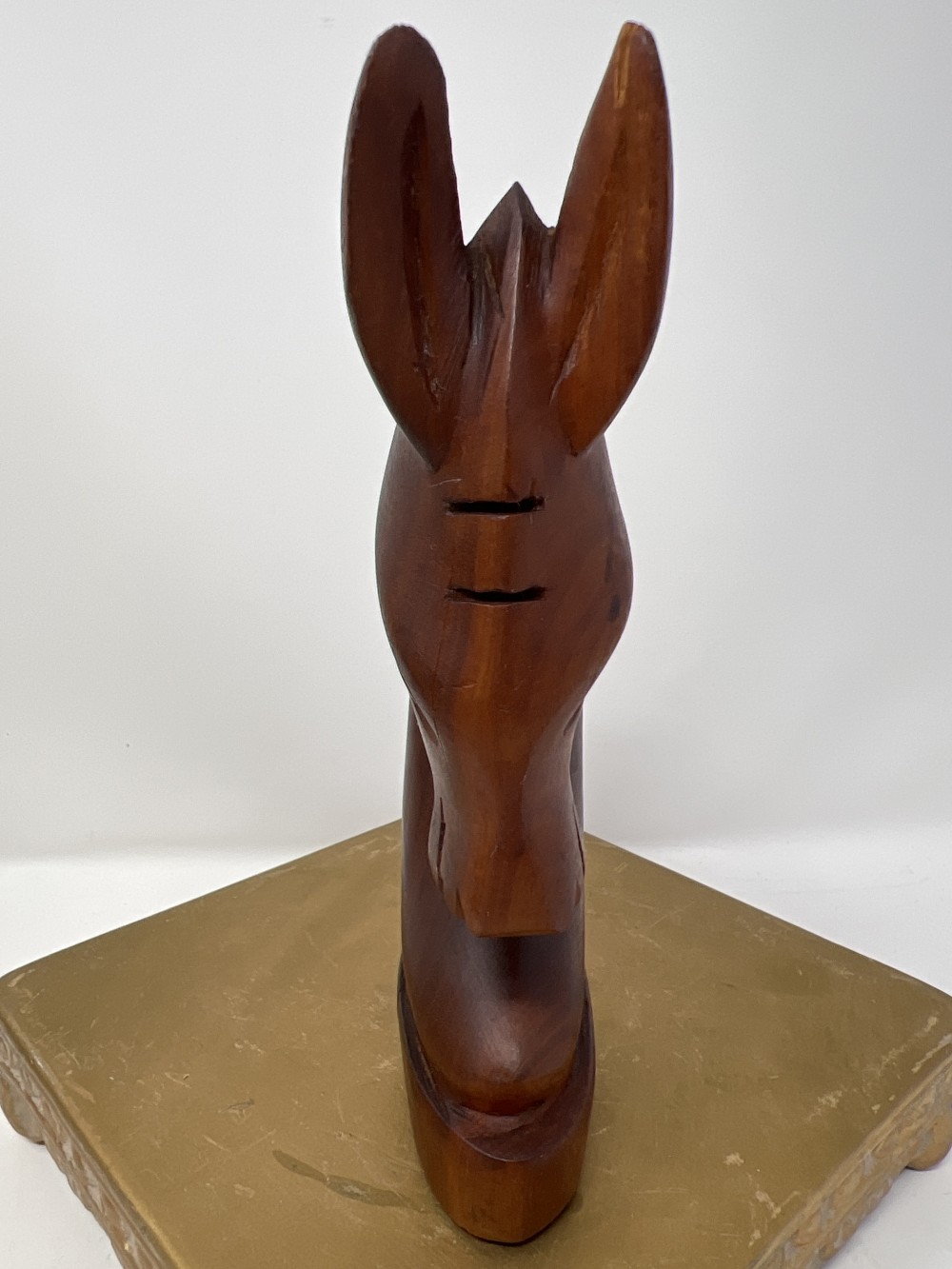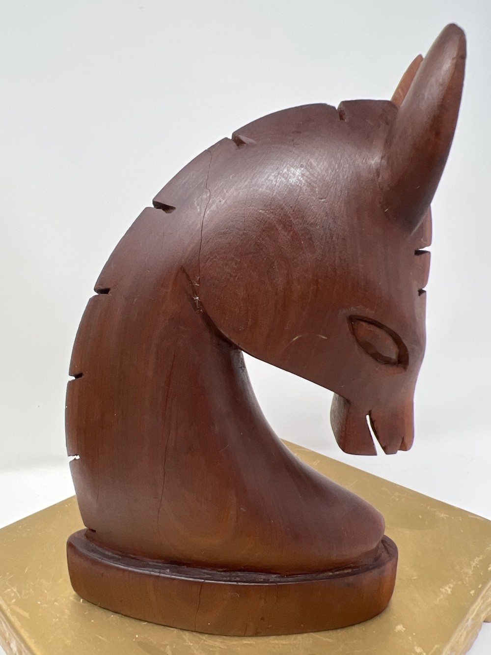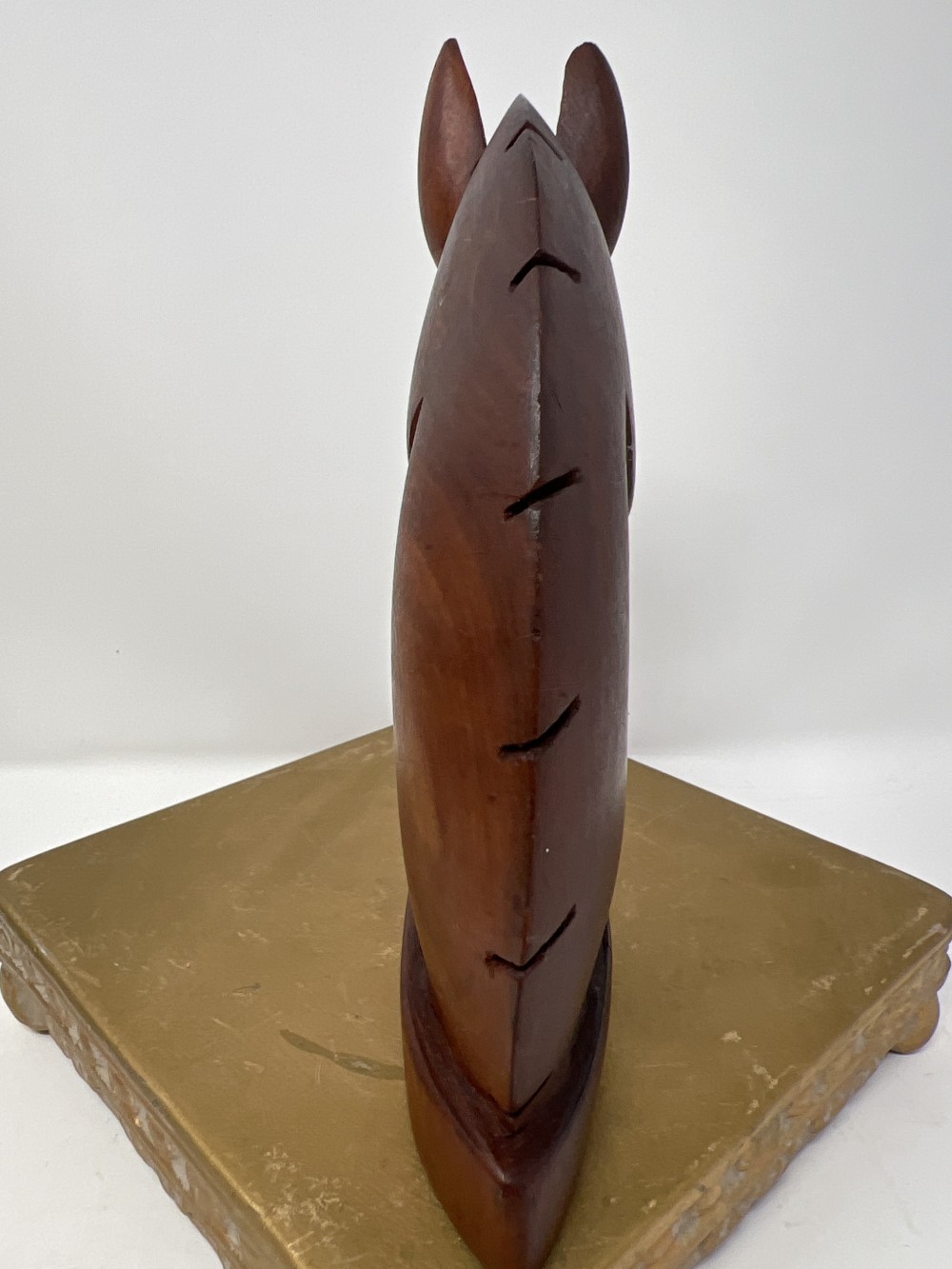 Vintage Hand Carved Wooden Horse Head; several callouts due to age — chip on ear and crack on one side — none affect integrity