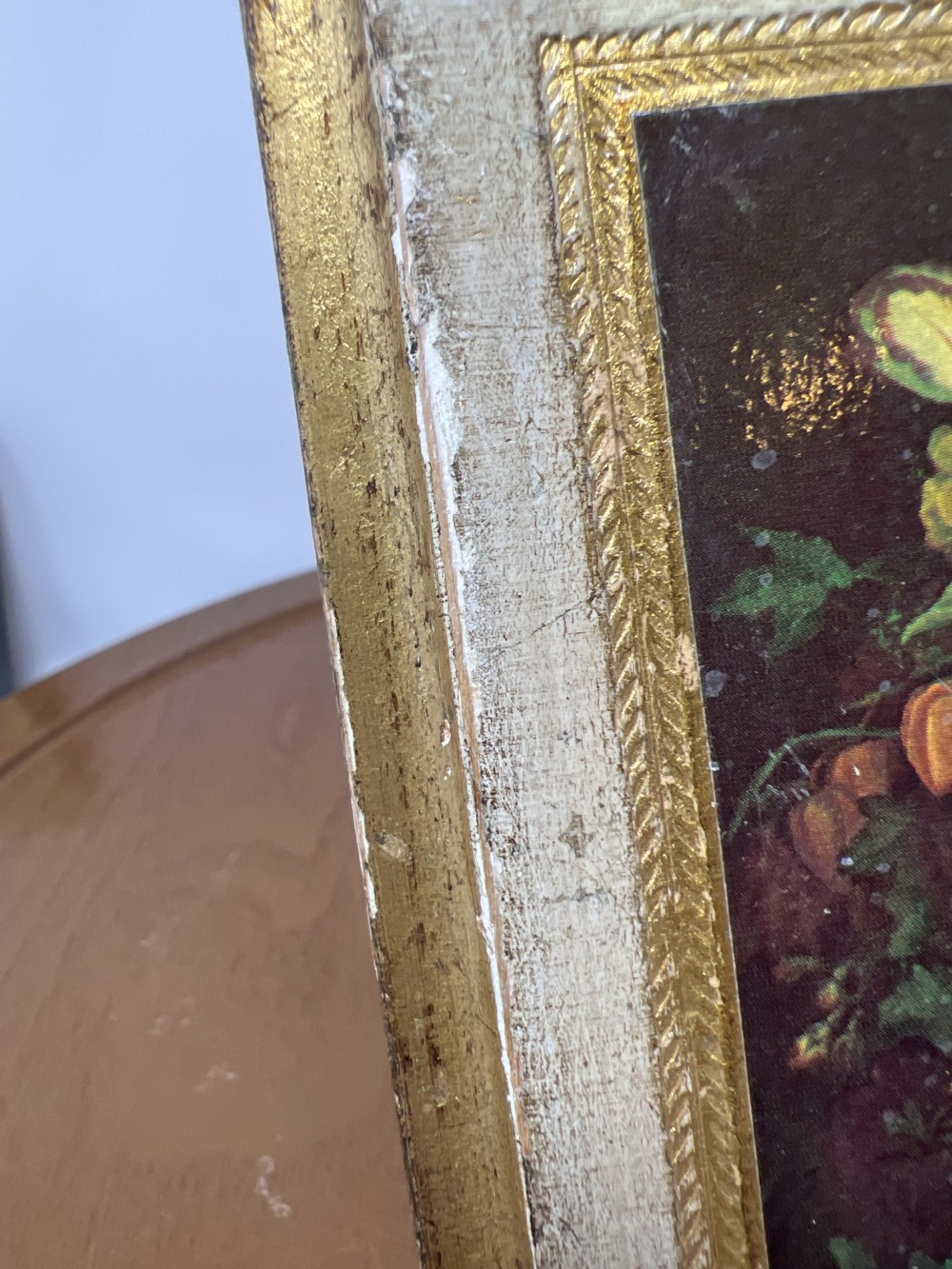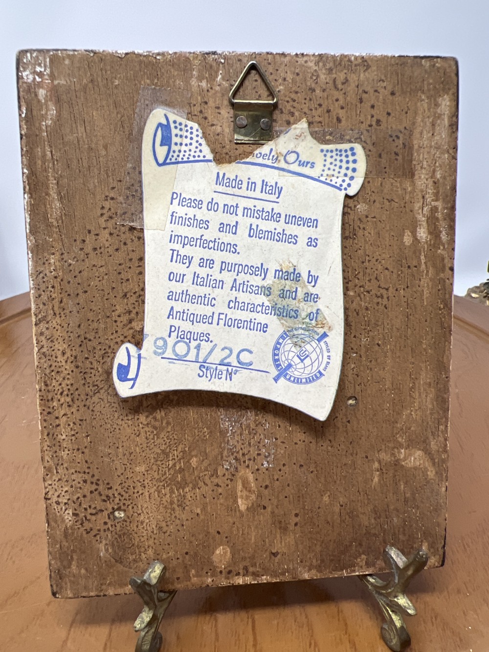 Italian Gilded Florentine Floral Wall Picture; Vintage Distressed; Gold; approx 4.5” x 6”
