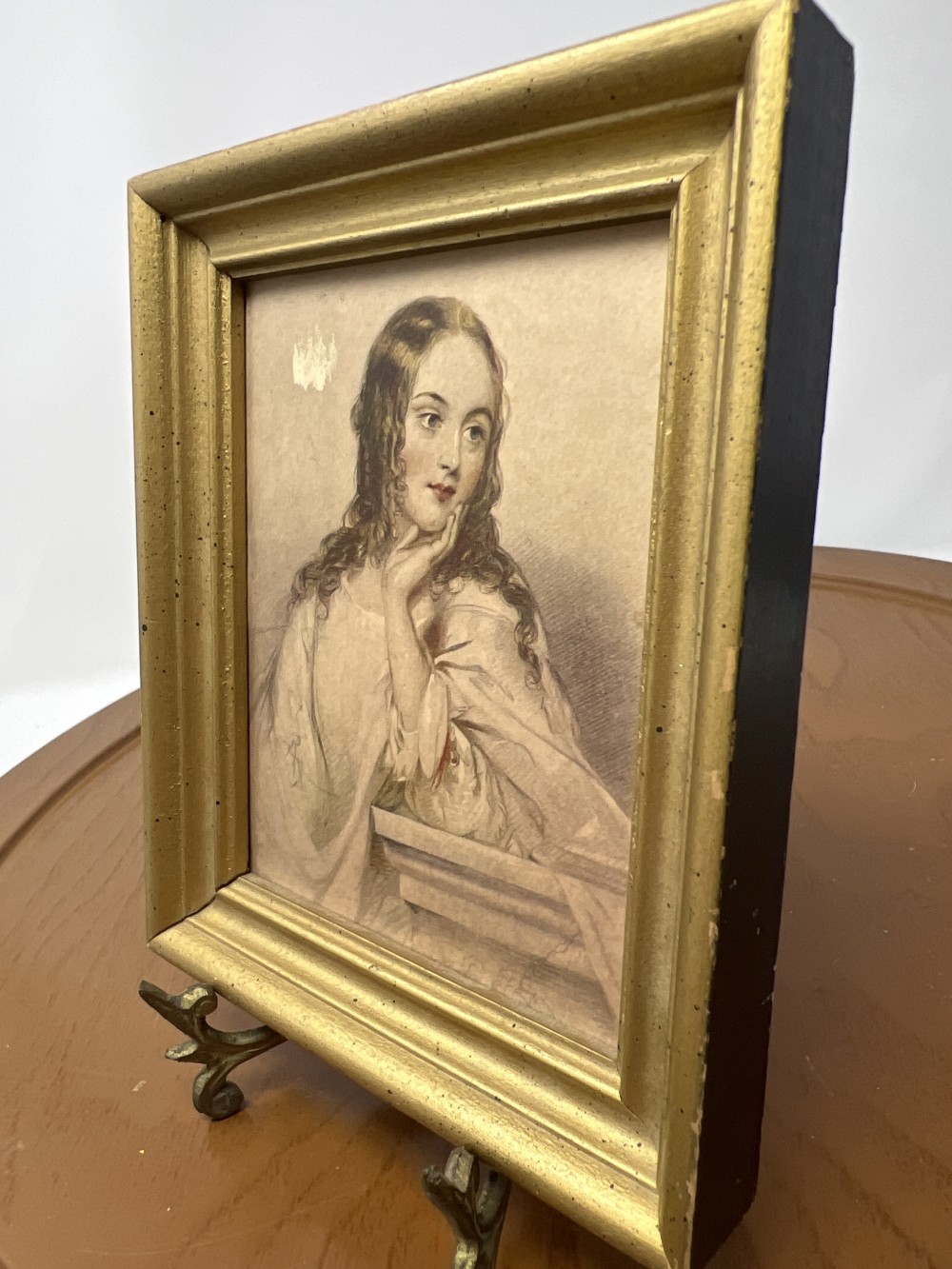 Vintage Framed Print of Juliet from Romeo and Juliet; approx 5” x 6”; Wood Frame; as shown in Photos