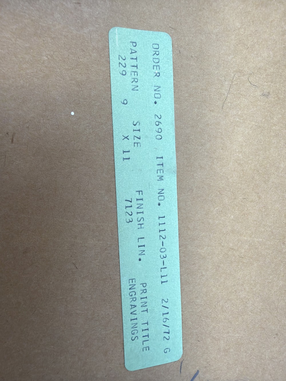 Framed reproduction of an 18th-century French engraving, produced 1972.