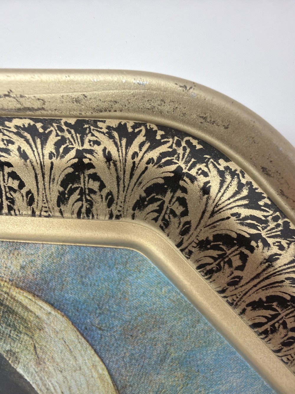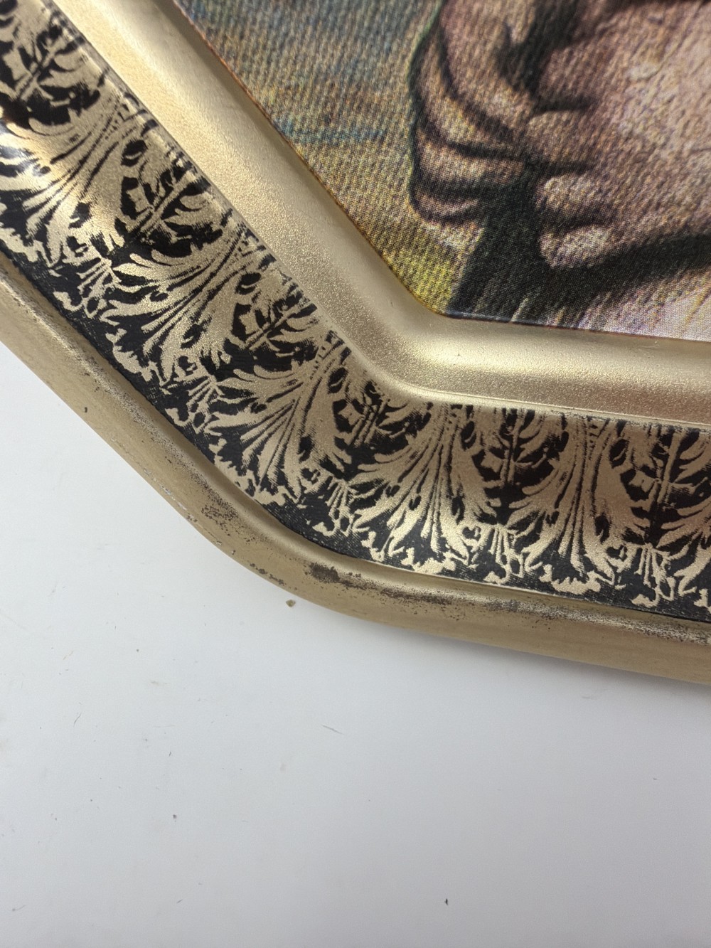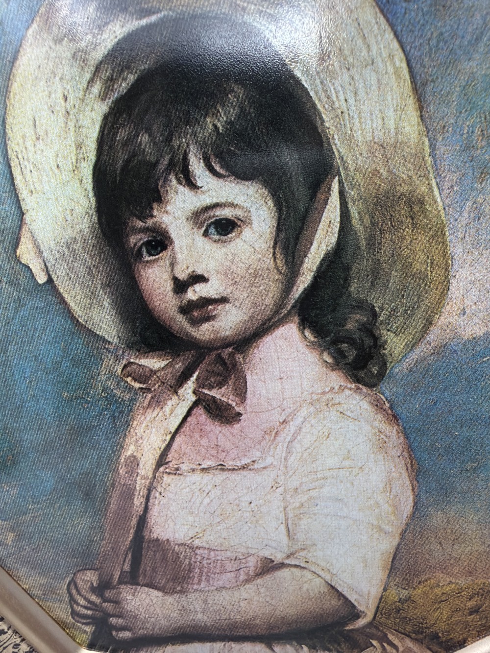 Vintage Victorian Print Tin Wall Art Girl in Bonnet Miss Willoughby Picture; Metal wall hanging; approx 12”- Patina as shown