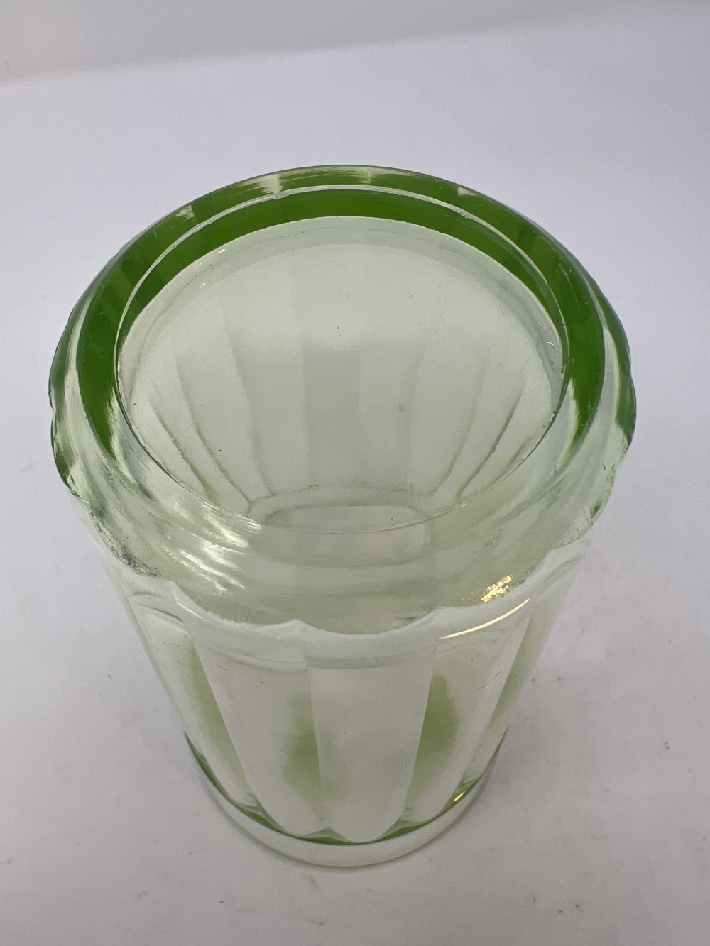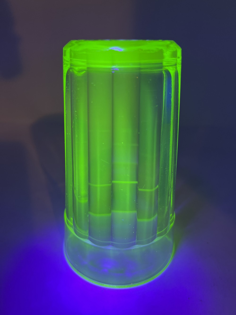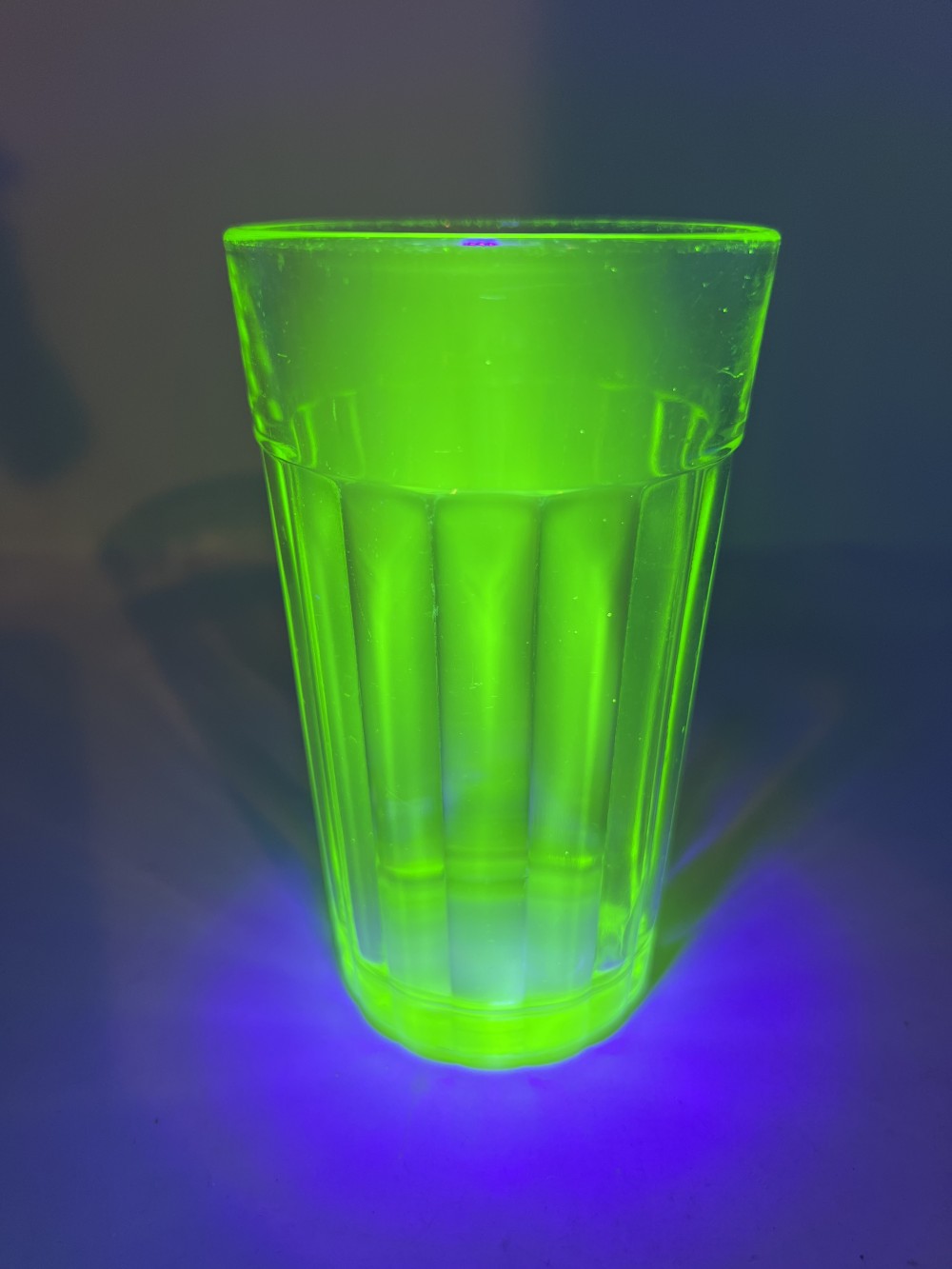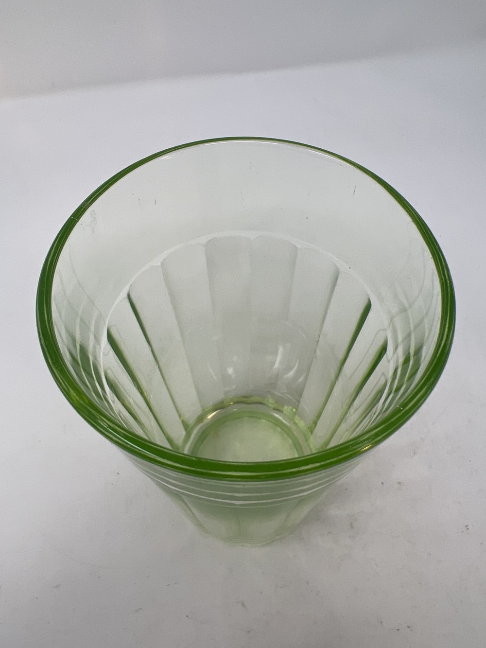 Vintage Uranium Depression Glass Tumbler Ribbed 5.25” Fluorescent Glow Glass