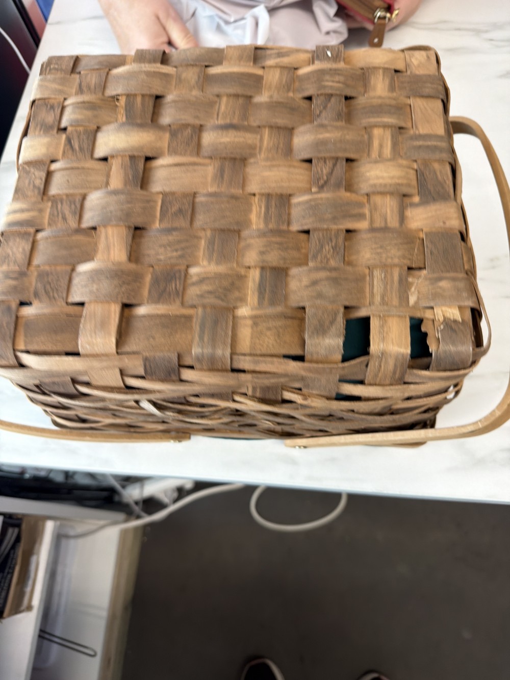 Home / Baskets / Picnic basket with green linen as is