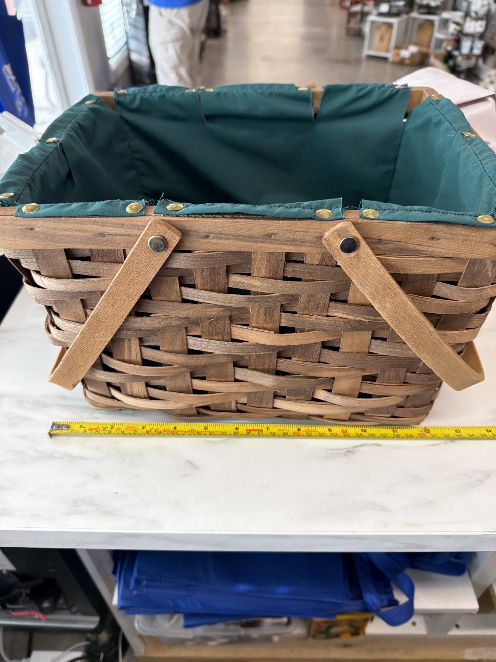 Picnic basket with green linen as is
