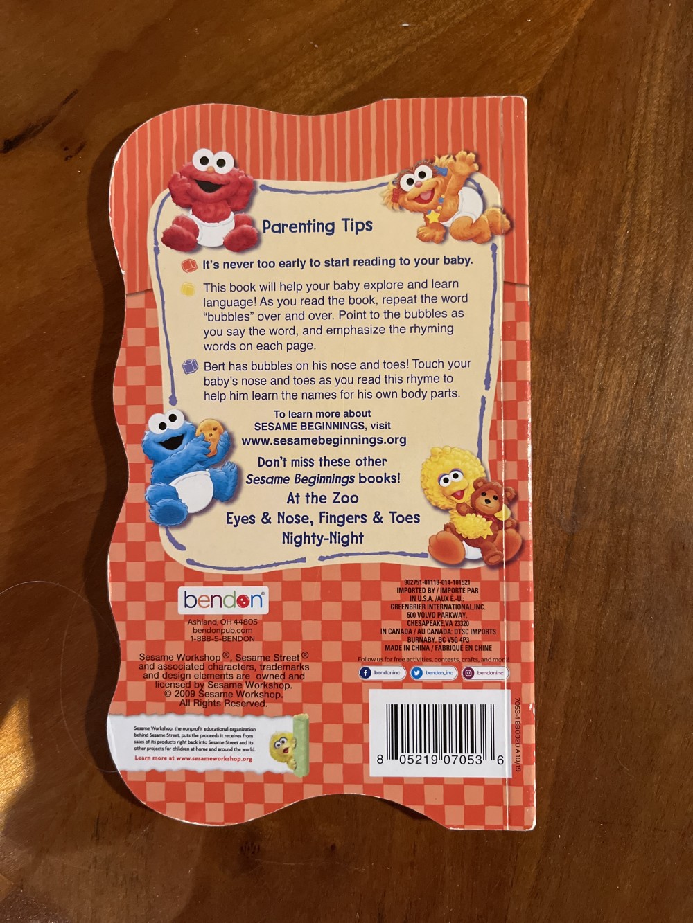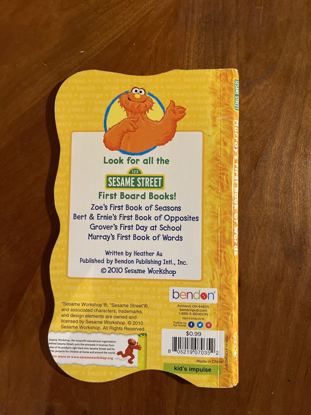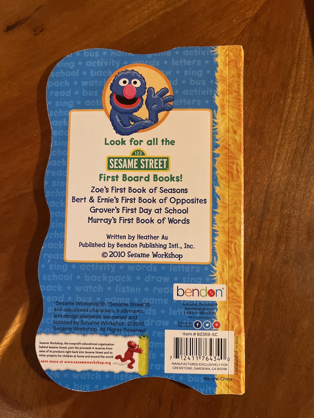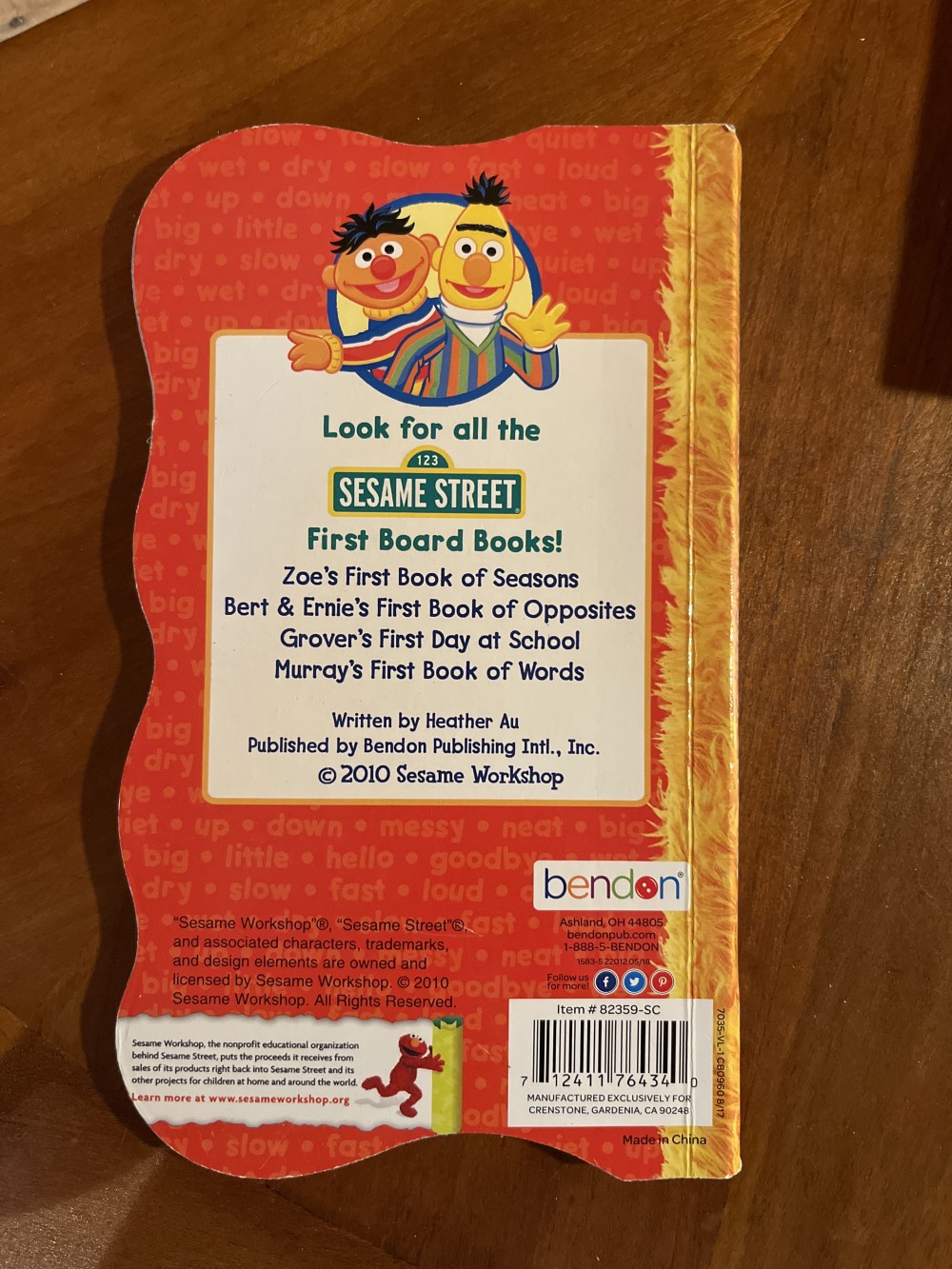 Sesame Street board books by Bendon. Four titles available, including: “Bert and Ernie’s First Book of Opposites,” “Grovers‘s First Day of School,” “Murray’s First Book of Words,” and “Big Bird’s Bubbles, Bubbles.”