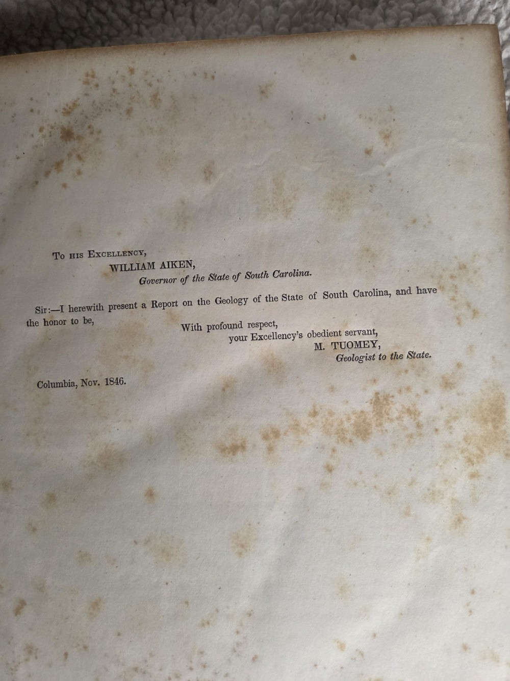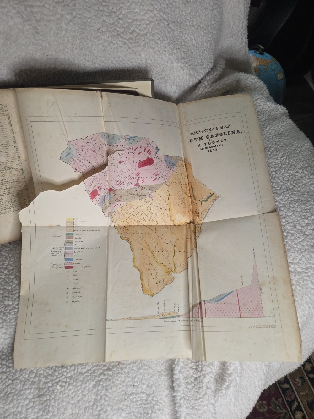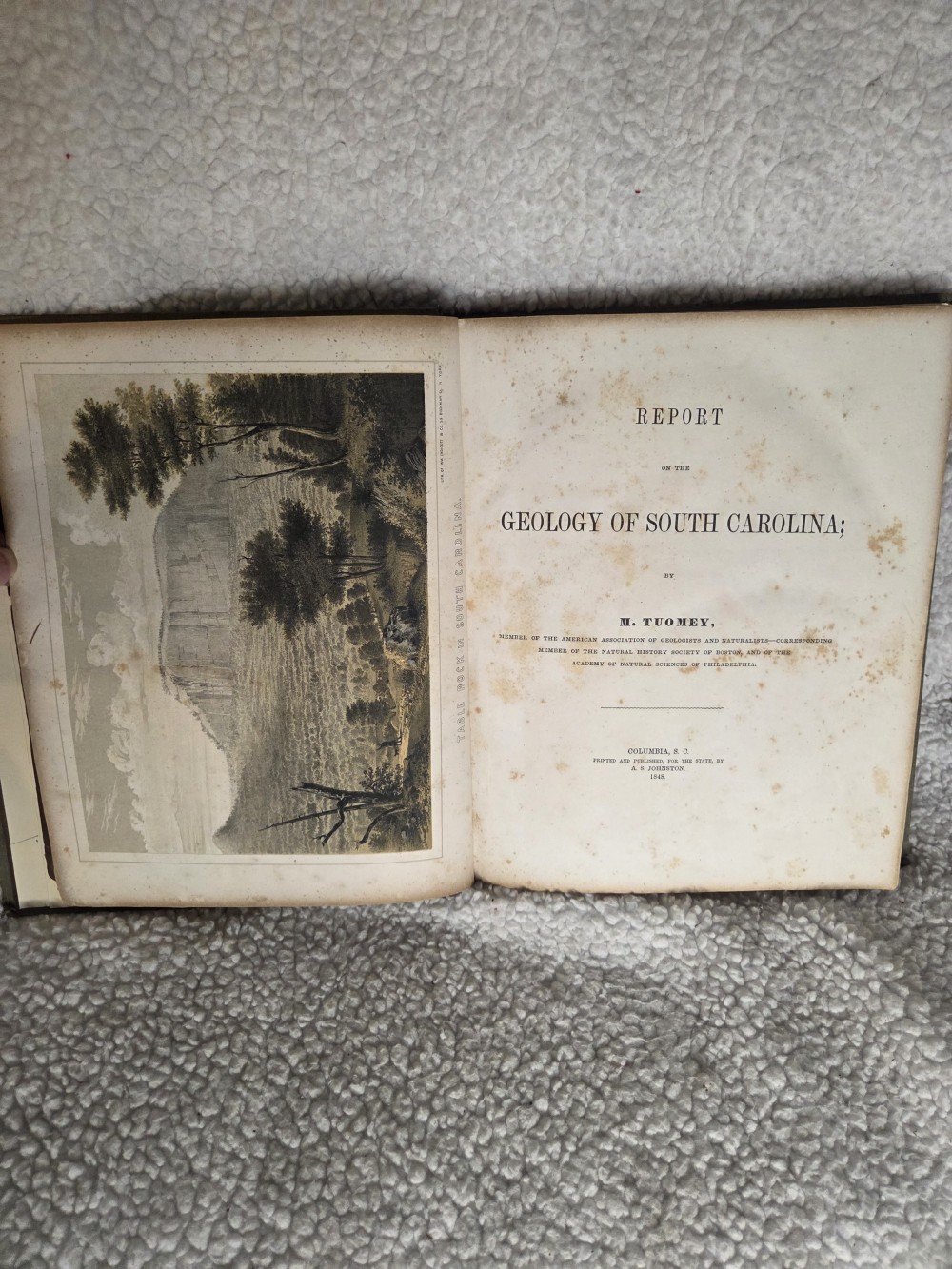 RARE Antique 1848 Tuomey Geology of South Carolina Book with Folding Map. Well-worn.