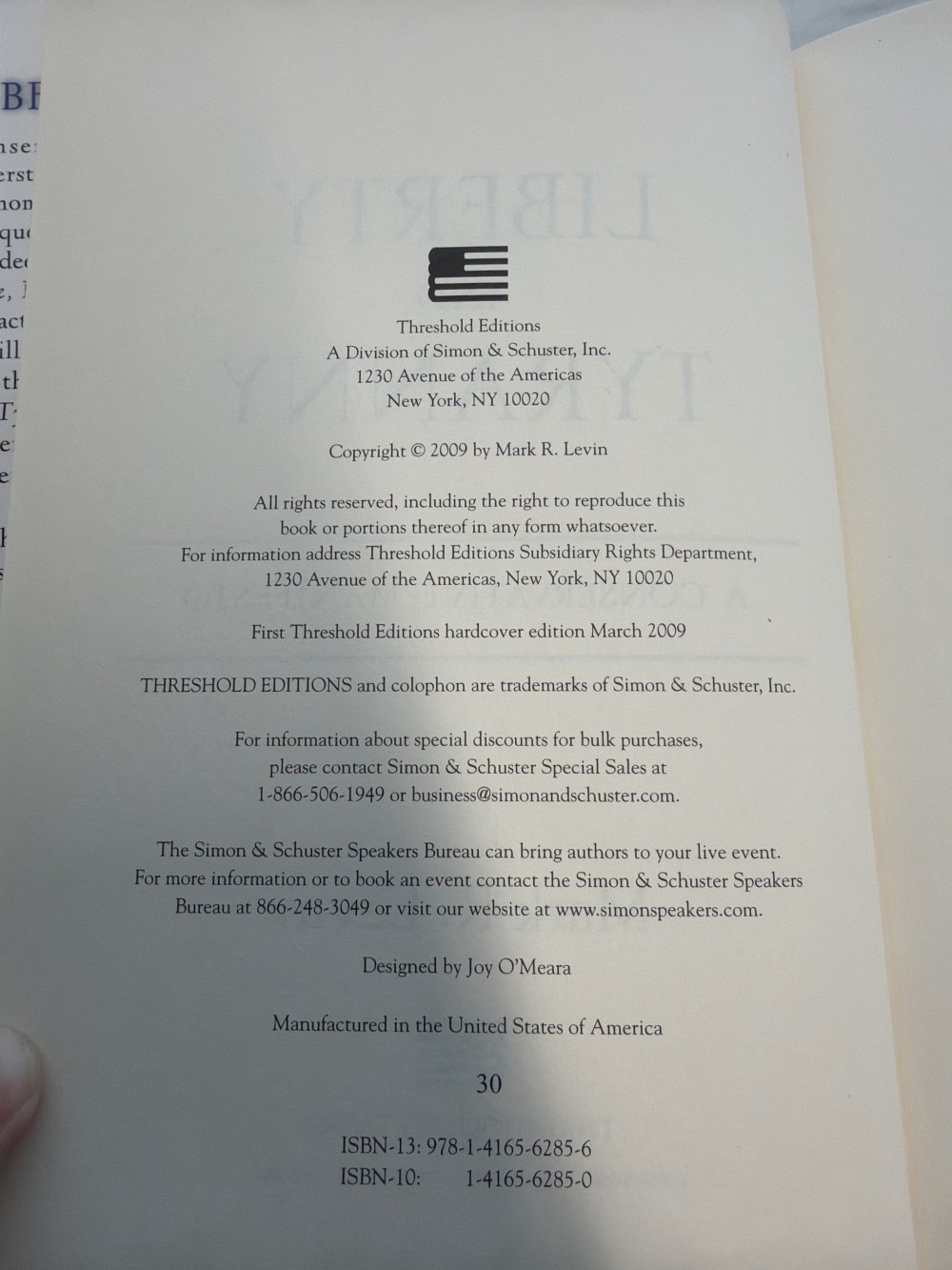 Book Liberty and Tyranny by Mark Levin Hardcover DJ
