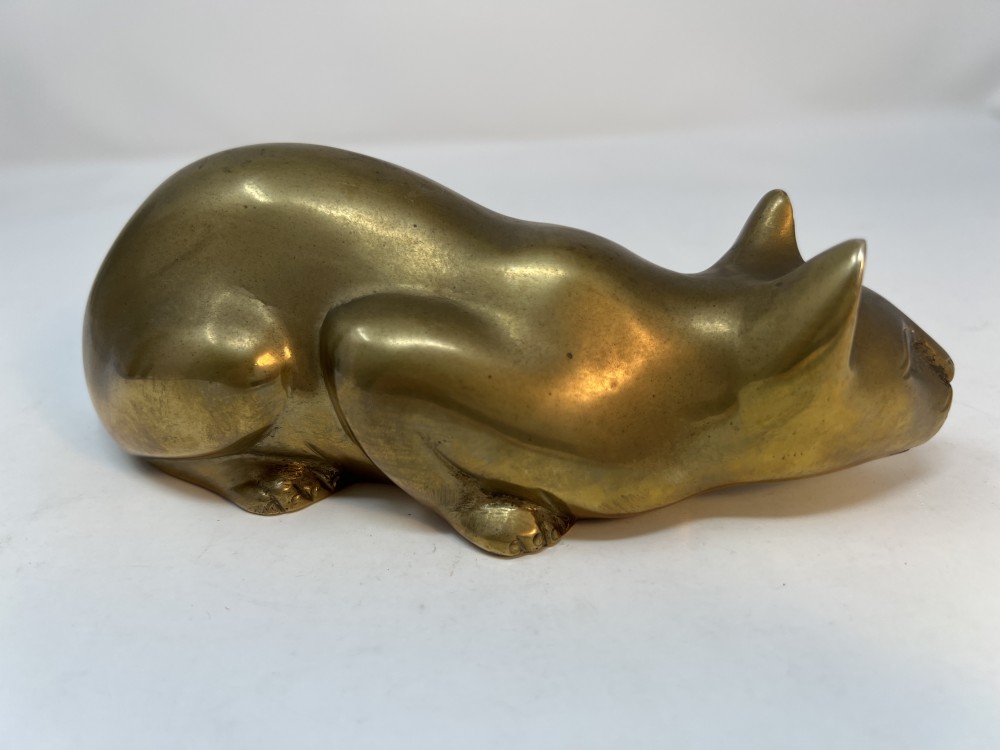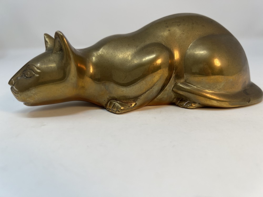 Vintage Solid Brass Crouching Cat