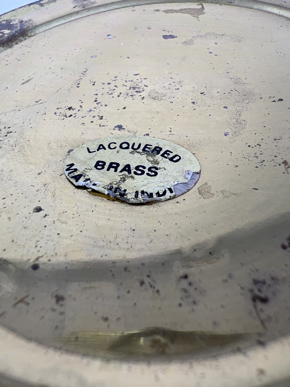 Vintage Lacquer Brass Planter; Made in India; approx 5” x 8”; patina