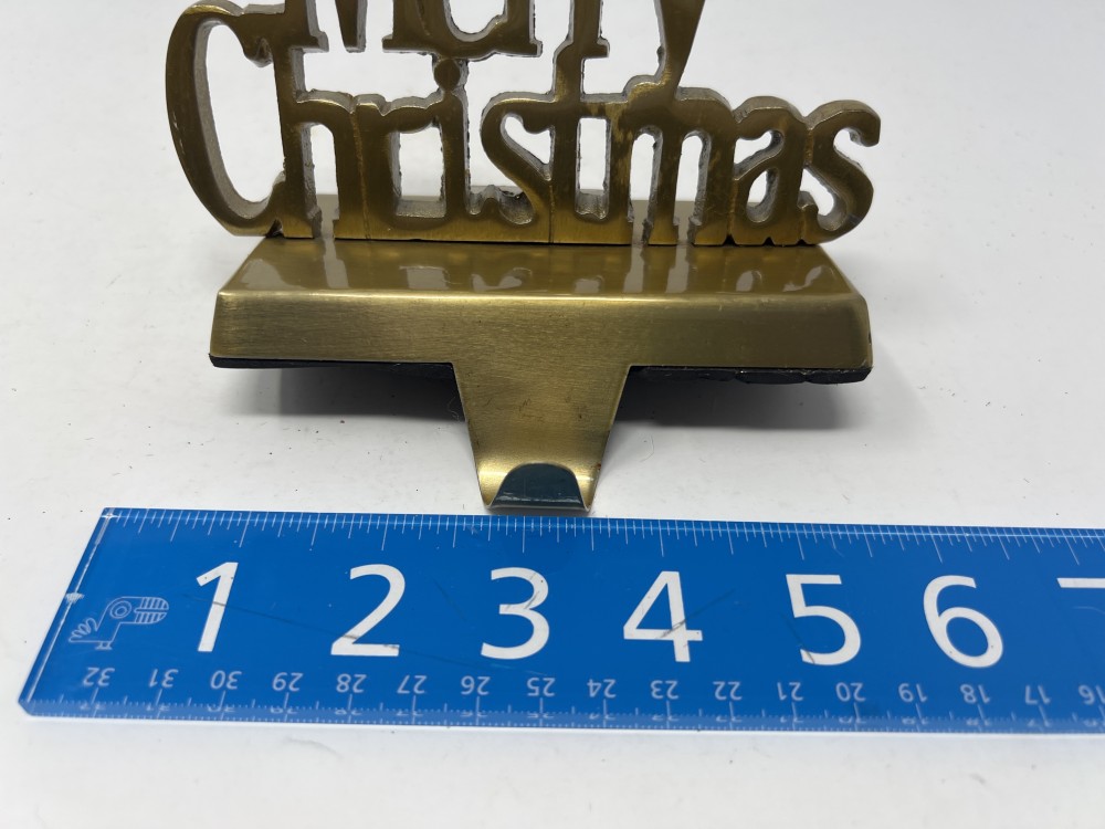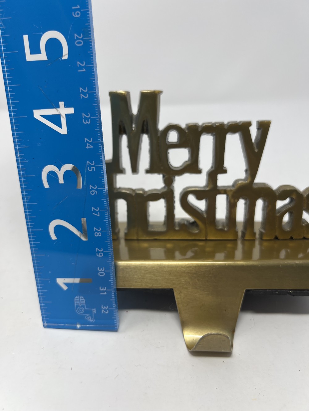 Brass Merry Christmas Stocking Hanger; approx 5.5” x 4.75 x 4”