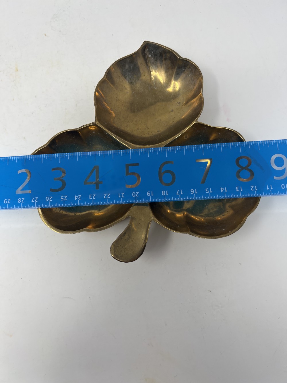 Vintage Brass Leaf Design Trinket Dish; approx 6.5” x 6.5”; Patina as shown in photo