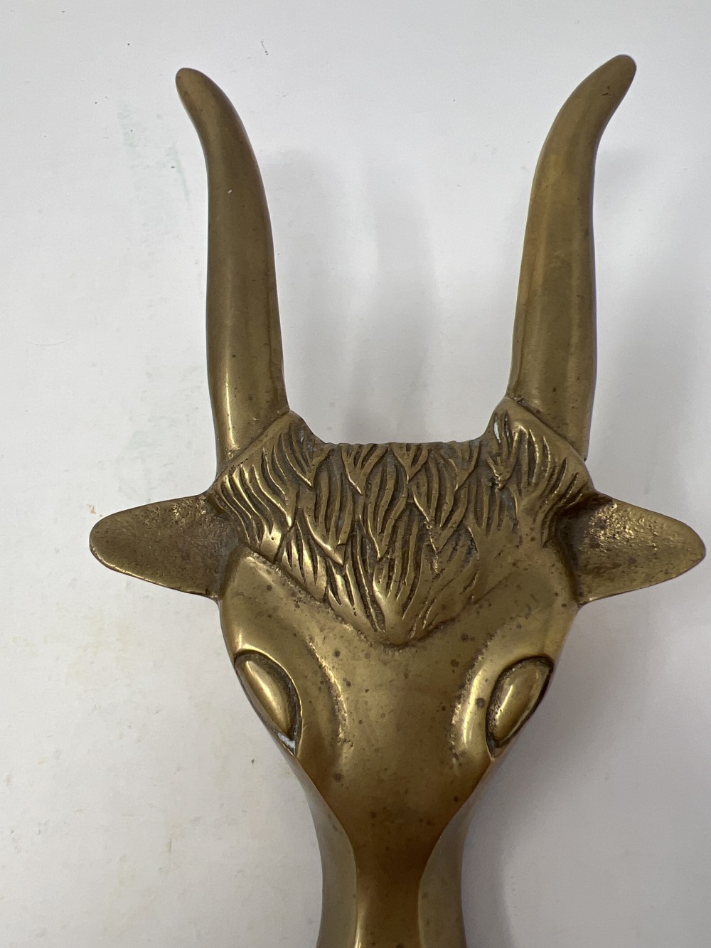 Vtg Solid Brass Bull Door Stop Boot Jack
