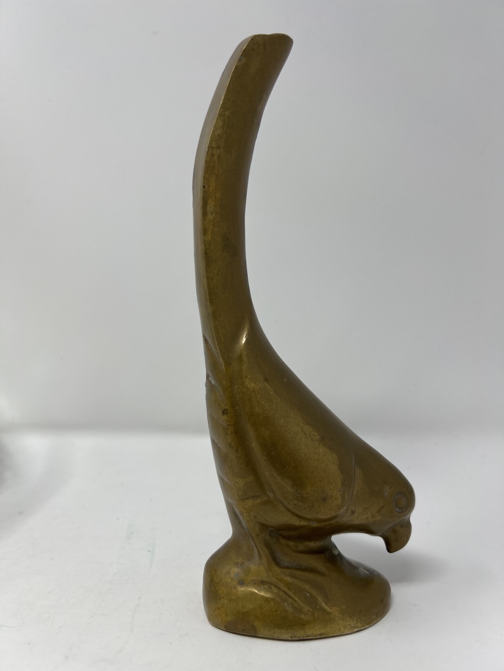 Vintage Brass Parakeet Bird Sculpture – Long Tail Mid Century Modern MCM Figurine; approx 8”; patina as shown in photos