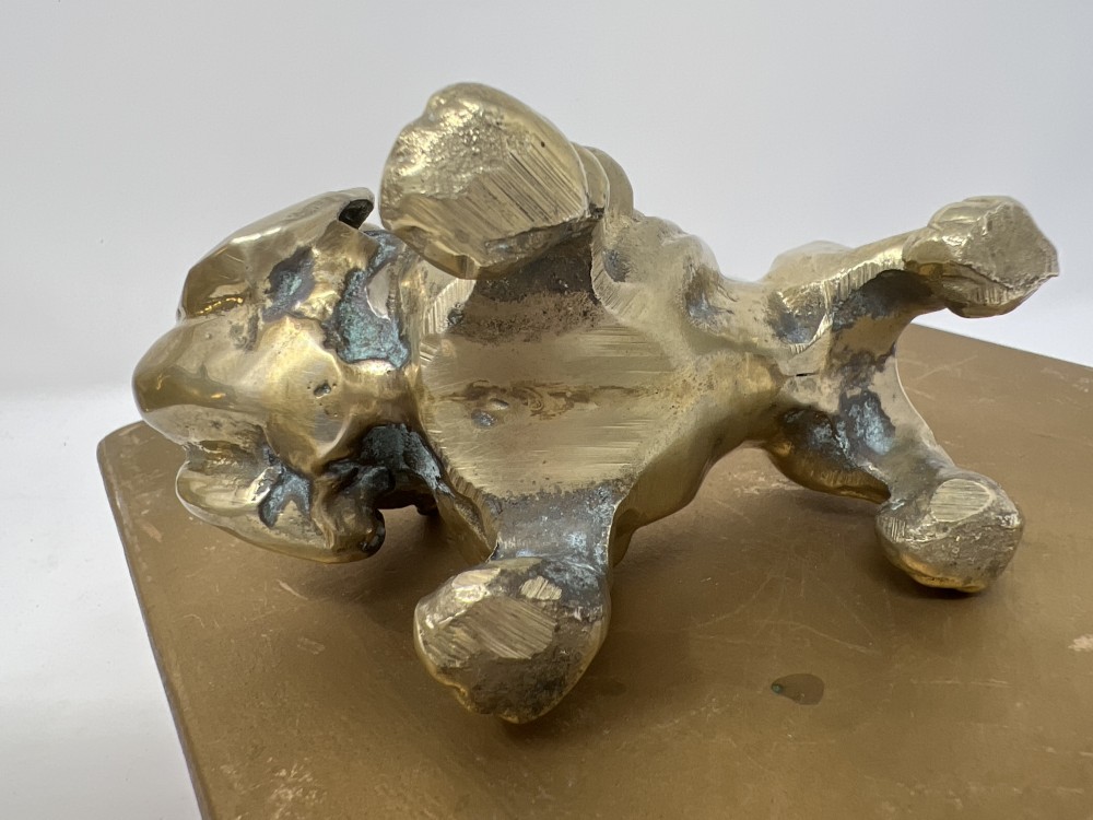 Heavy (approx 1 lb) Vintage Solid Brass Bulldog; Paperweight; patina as shown in photos; approx 2.5” x 4.25”