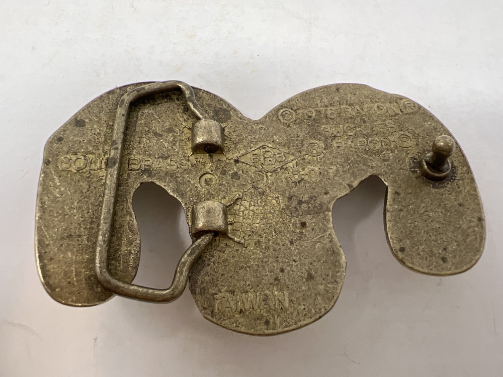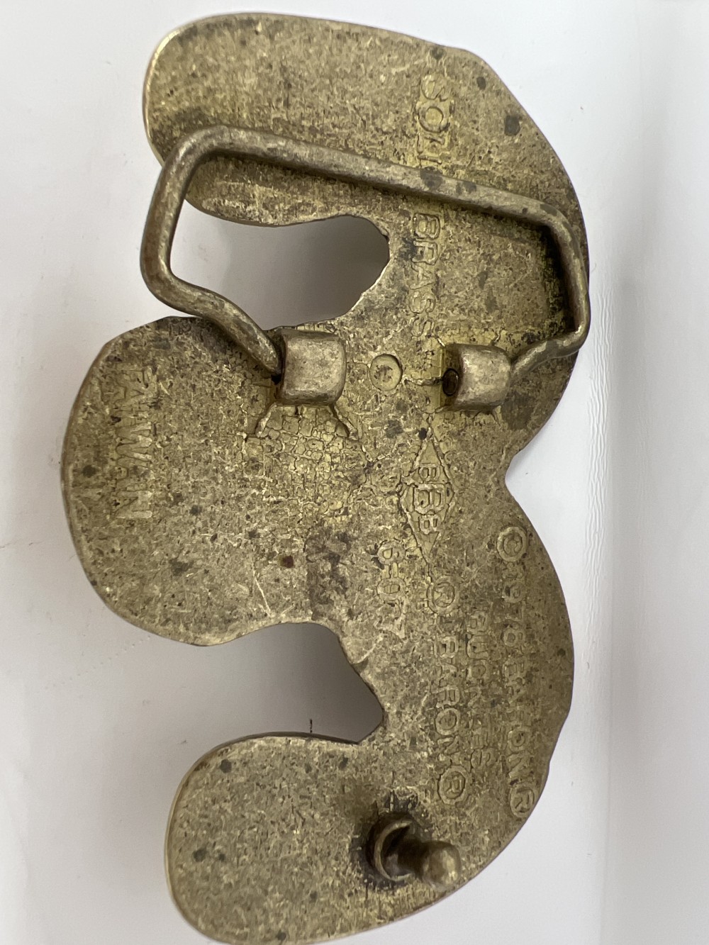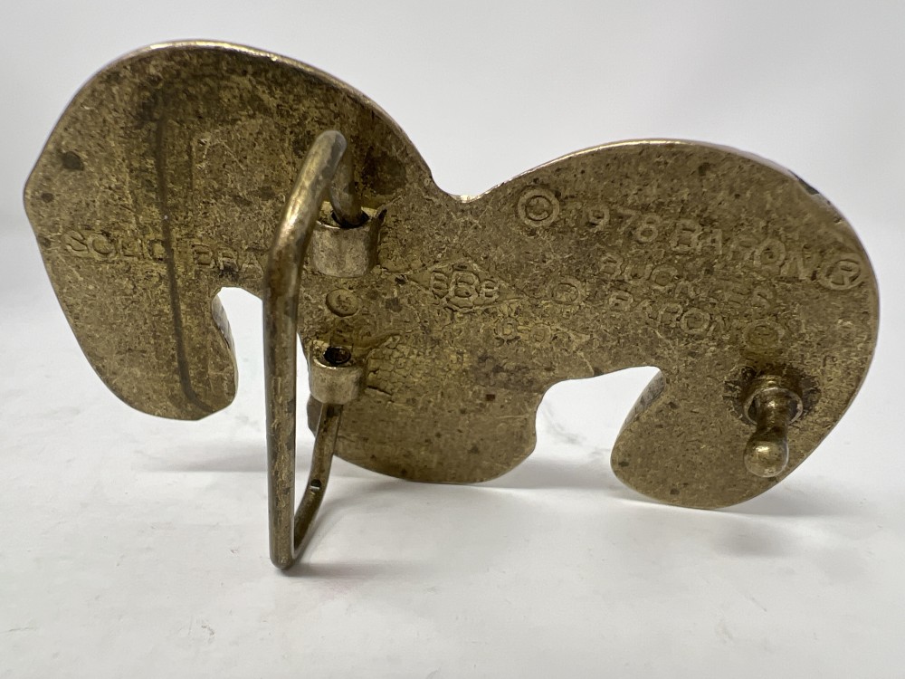 1978 Baron Buckle Longhorn Sheep Ram’s Head Solid Brass Belt Buckle 6071 Western; approx 3.75” x 2.25”
