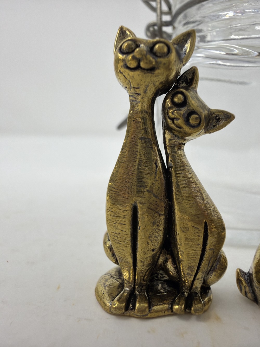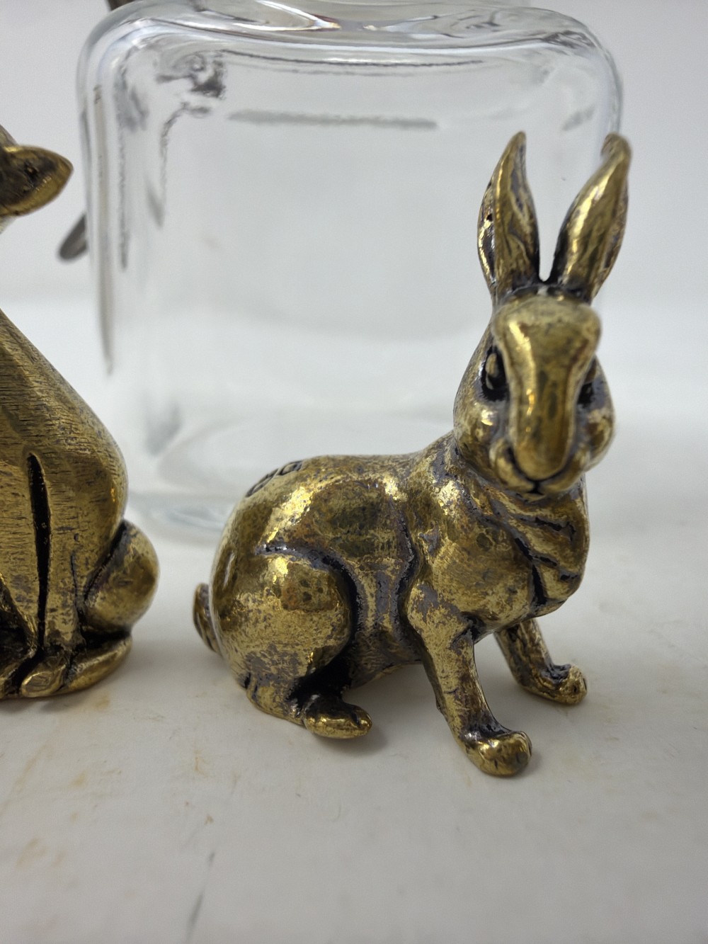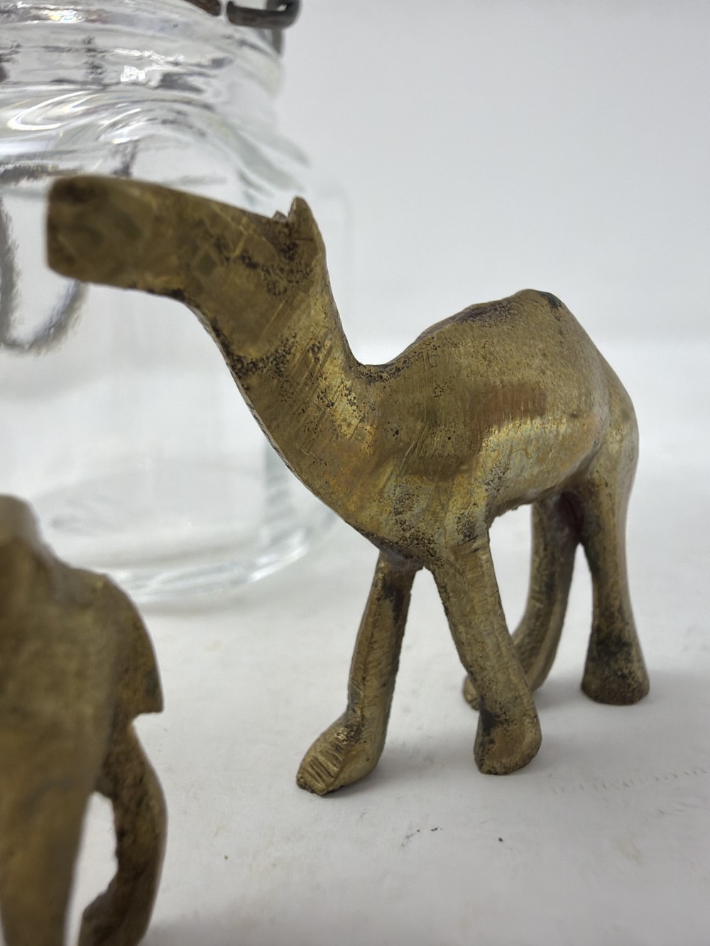 Mini Brass Animals in Jar - Two cats; rabbit Camel and camel; jar is approx 3.25”