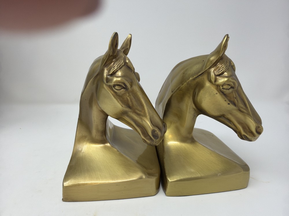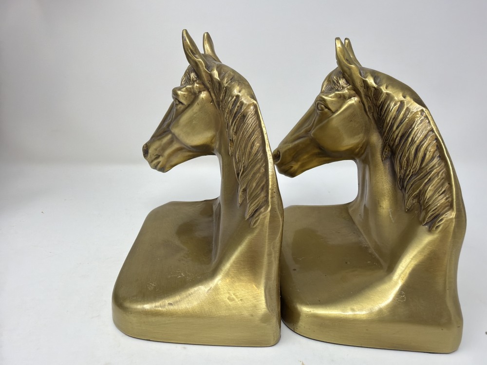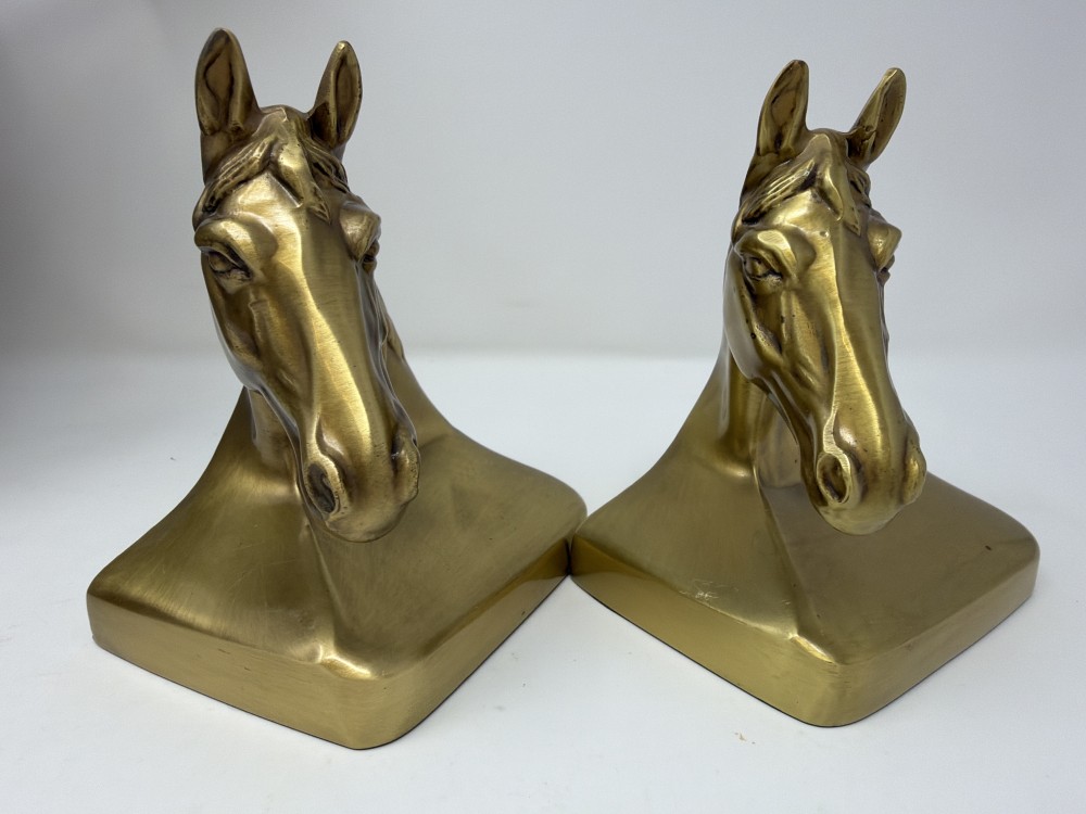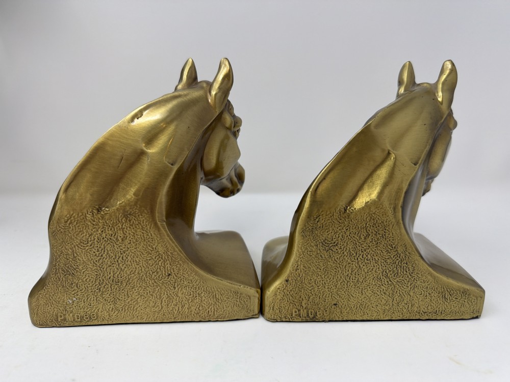 Pr Solid, Heavy (approx 5lbs) Brass Horse Head Bookends; PM Craftsman- Lakeland, FL; Made in USA; PMB88