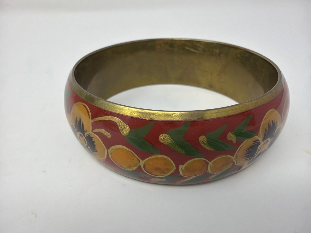 Vtg Brass Floral Enamel Bangle