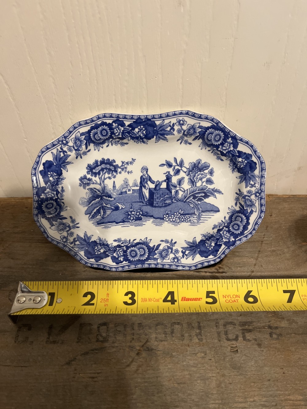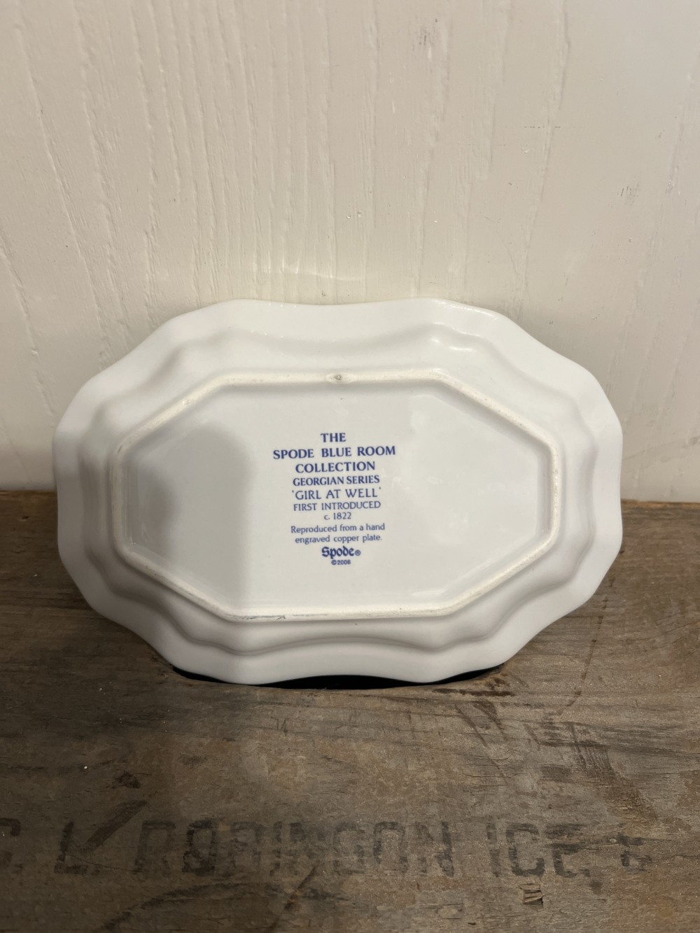 Vintage The Spode Blue Room Collection, Georgian series, “Girl at Well“ soap dish/trinket dish. This beautiful blue & white dish was reproduced in 2006 from a hand engraved copper plate, first introduced in 1822. Measures approximately 6.5” x 4.5”. this item is preowned in excellent condition with no damage.