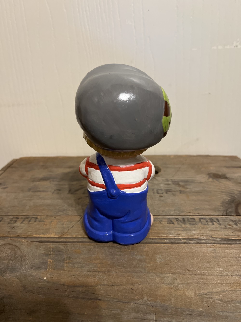 Vintage hand painted ceramic little boy statue, likely by Atlantic Mold or similar manufacturer. These pieces were usually painted at hobbiest shops and often were made into banks, although this one is not.This little cutie stands 5.5” tall and is in very good condition with no damage.
