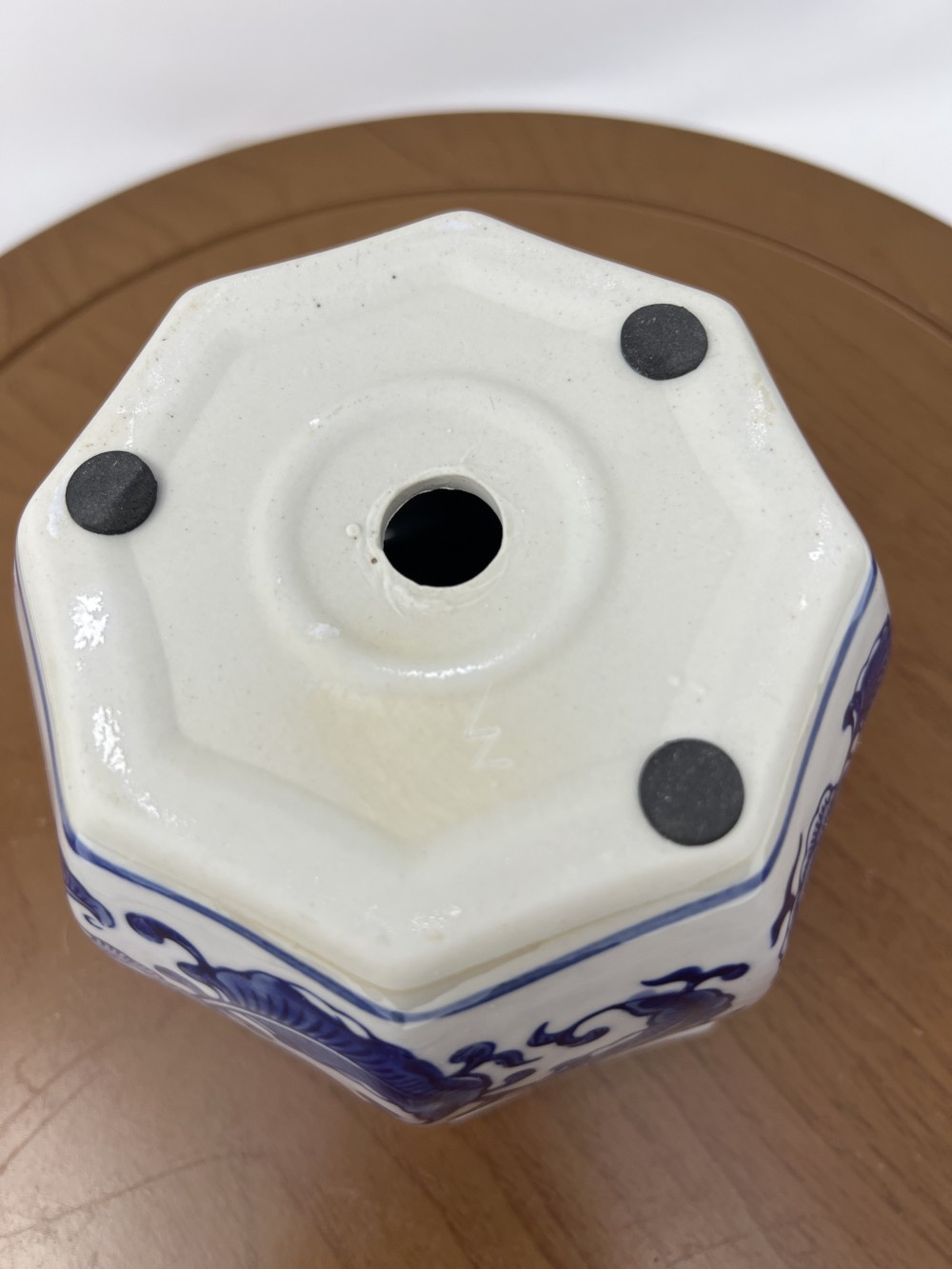 Classic chinoiserie-style porcelain planter with cobalt floral motif and faceted rim.
