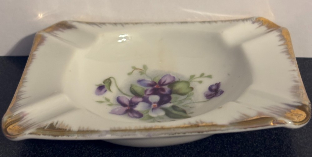 Shafford white with violets and gold trim Individual ashtray Japan4" x 3"
