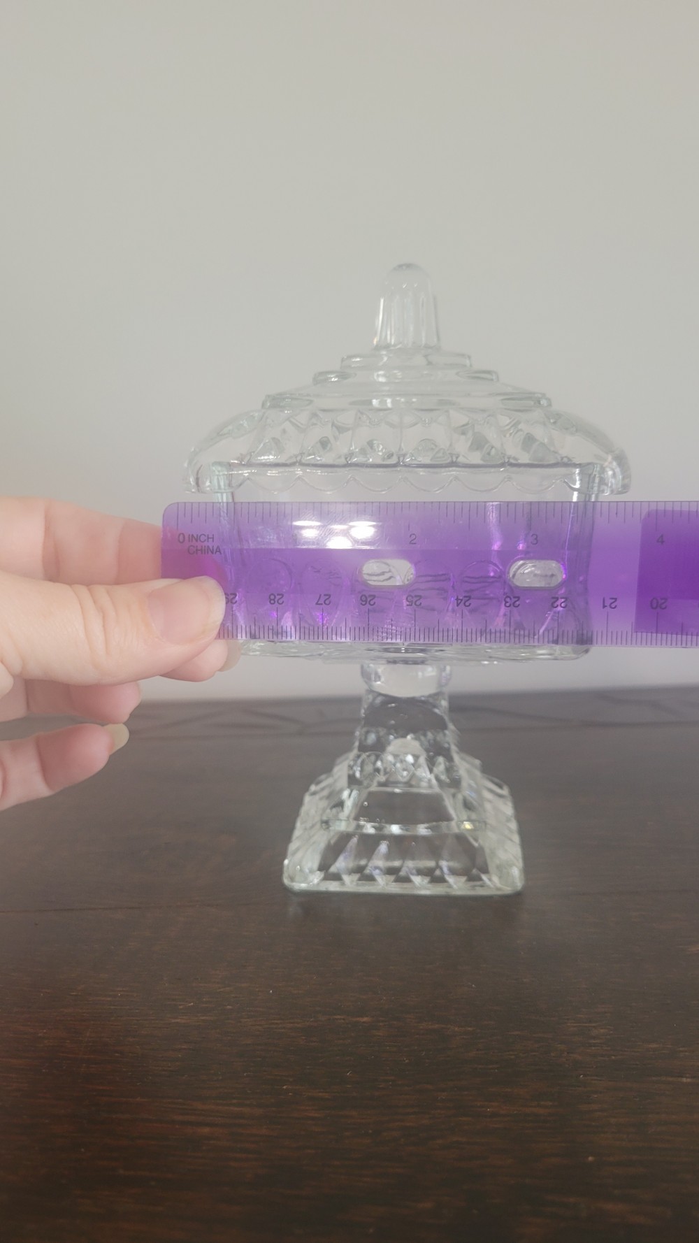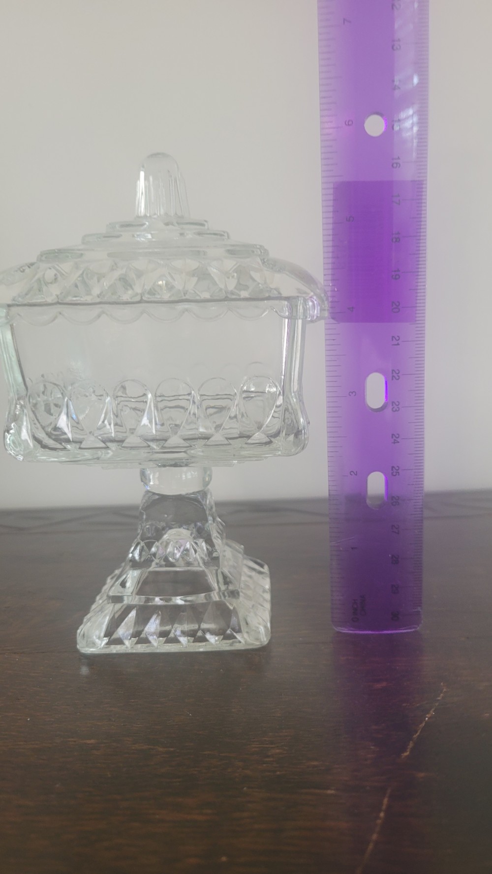 This piece is in great condition. It measures approximately 6.5 inches tall and 4 inches square.