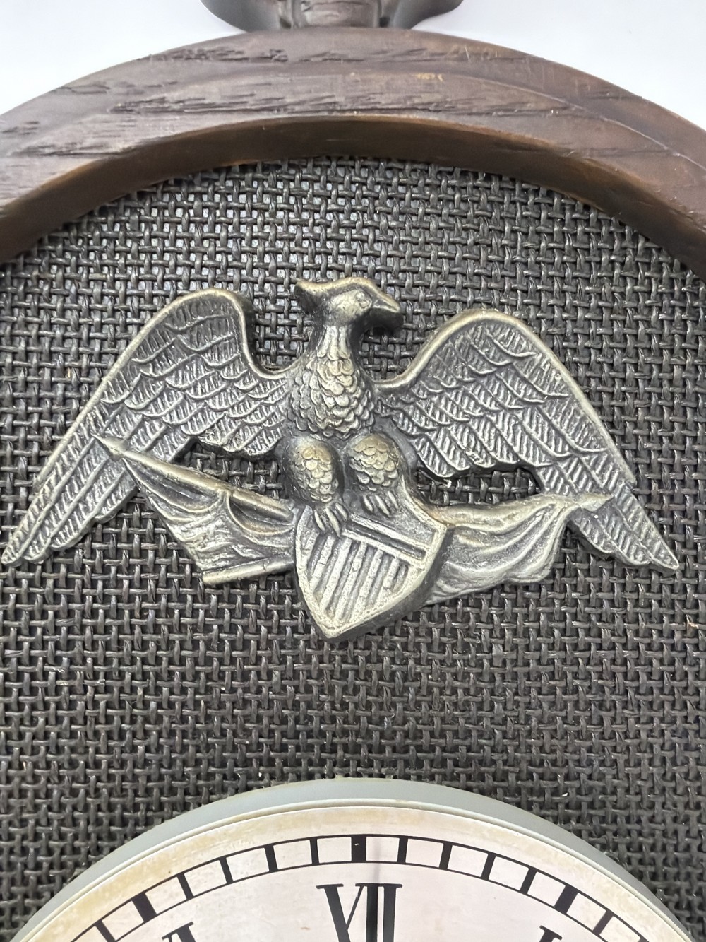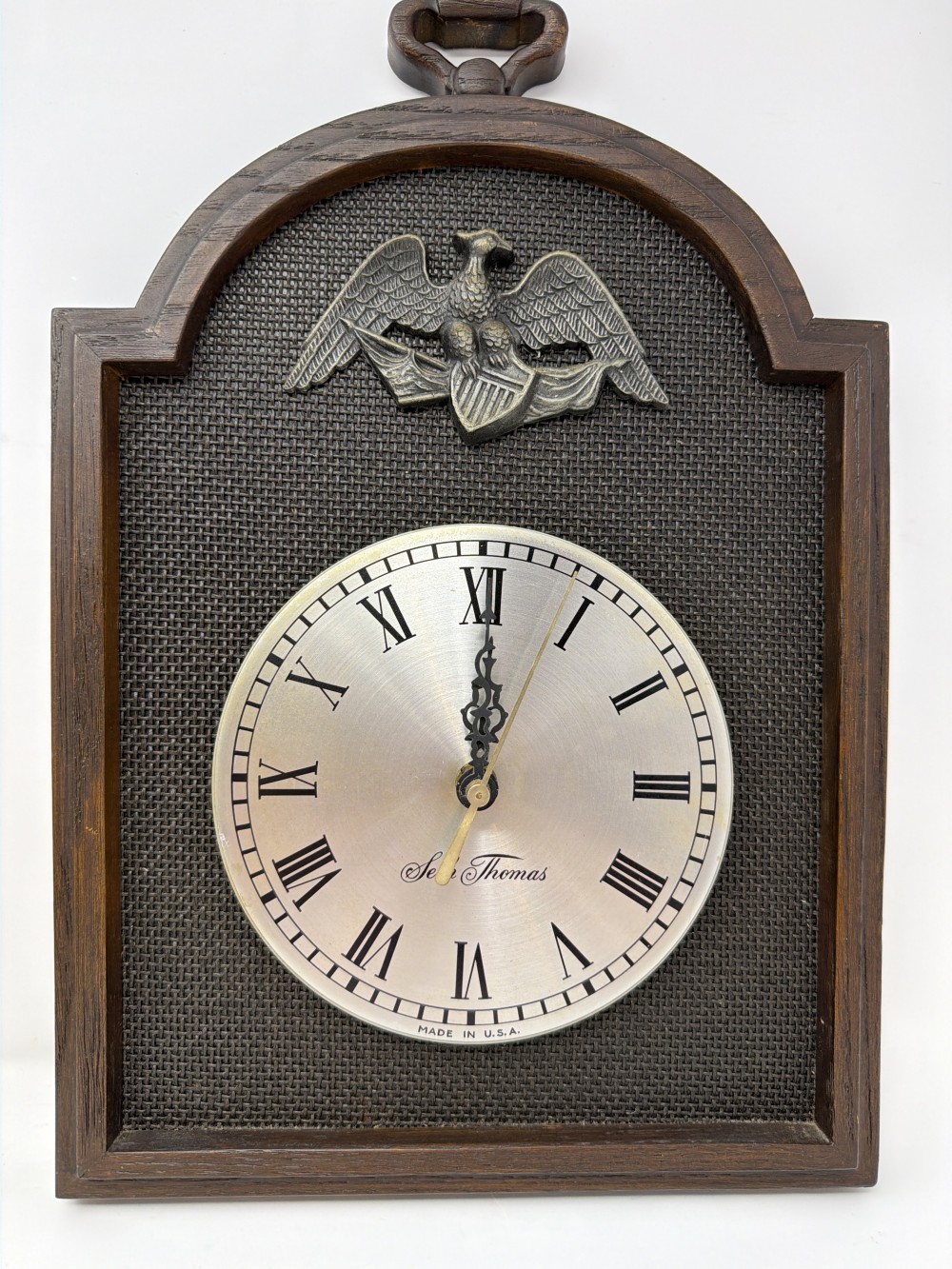 Vintage Seth Thomas Eagle Wall Clock Institution E899-530; WORKING Quartz C Battery Operated; Made in USA, November 1968; approx 15” x 11.5”