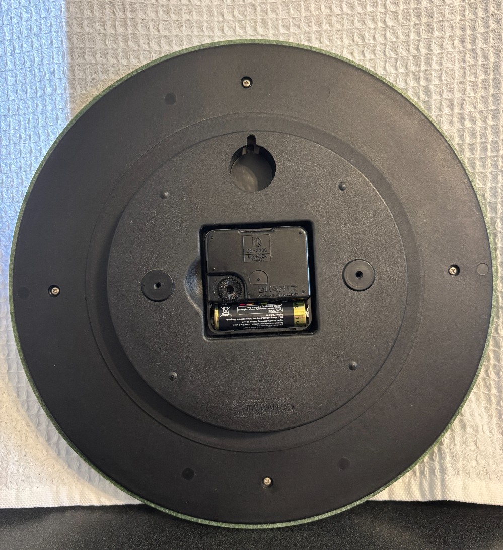 Westclox sage green plastic wall clock. AA battery operated.