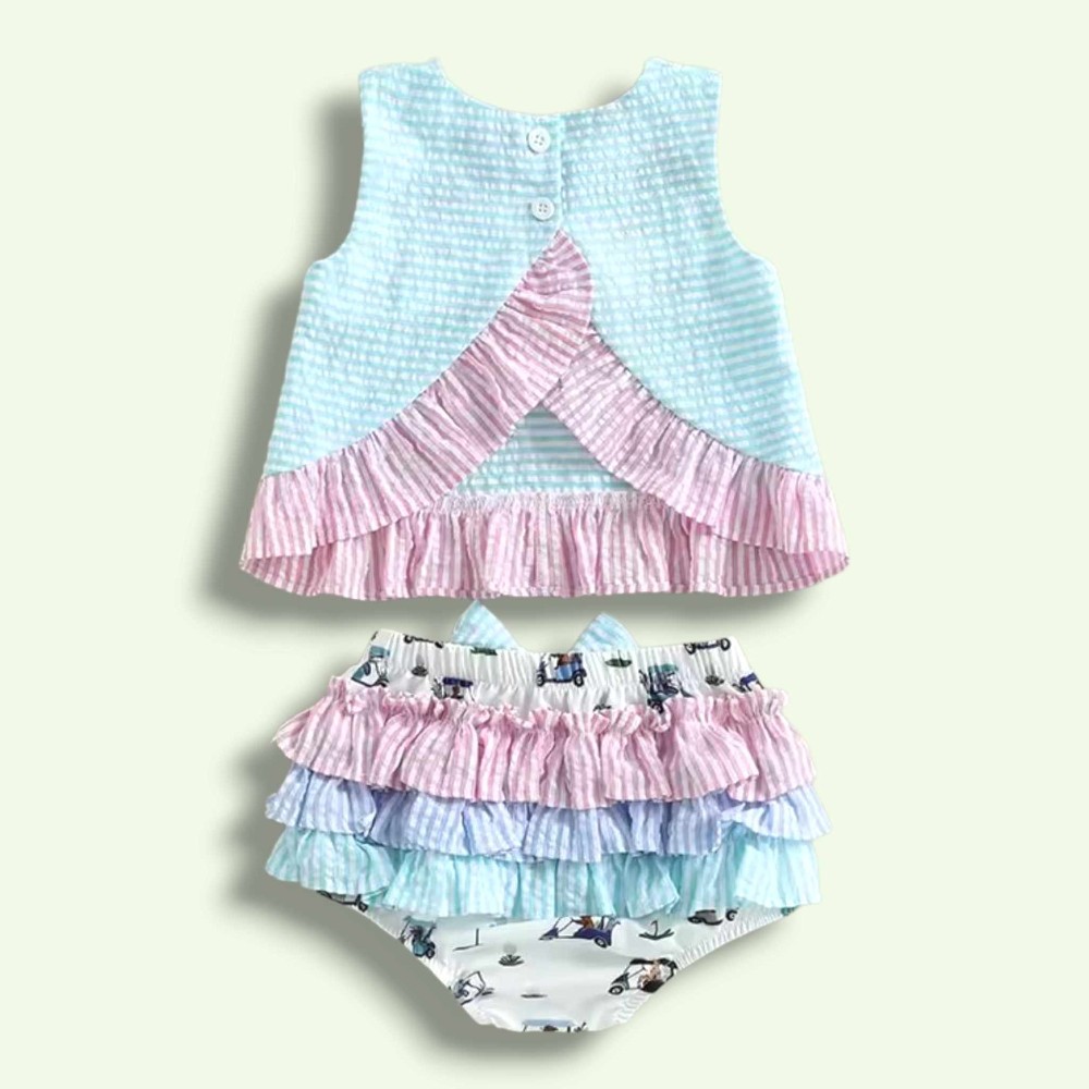 Fabric is cotton seersucker.Design is embroidered applique.Fit is true to size for most.