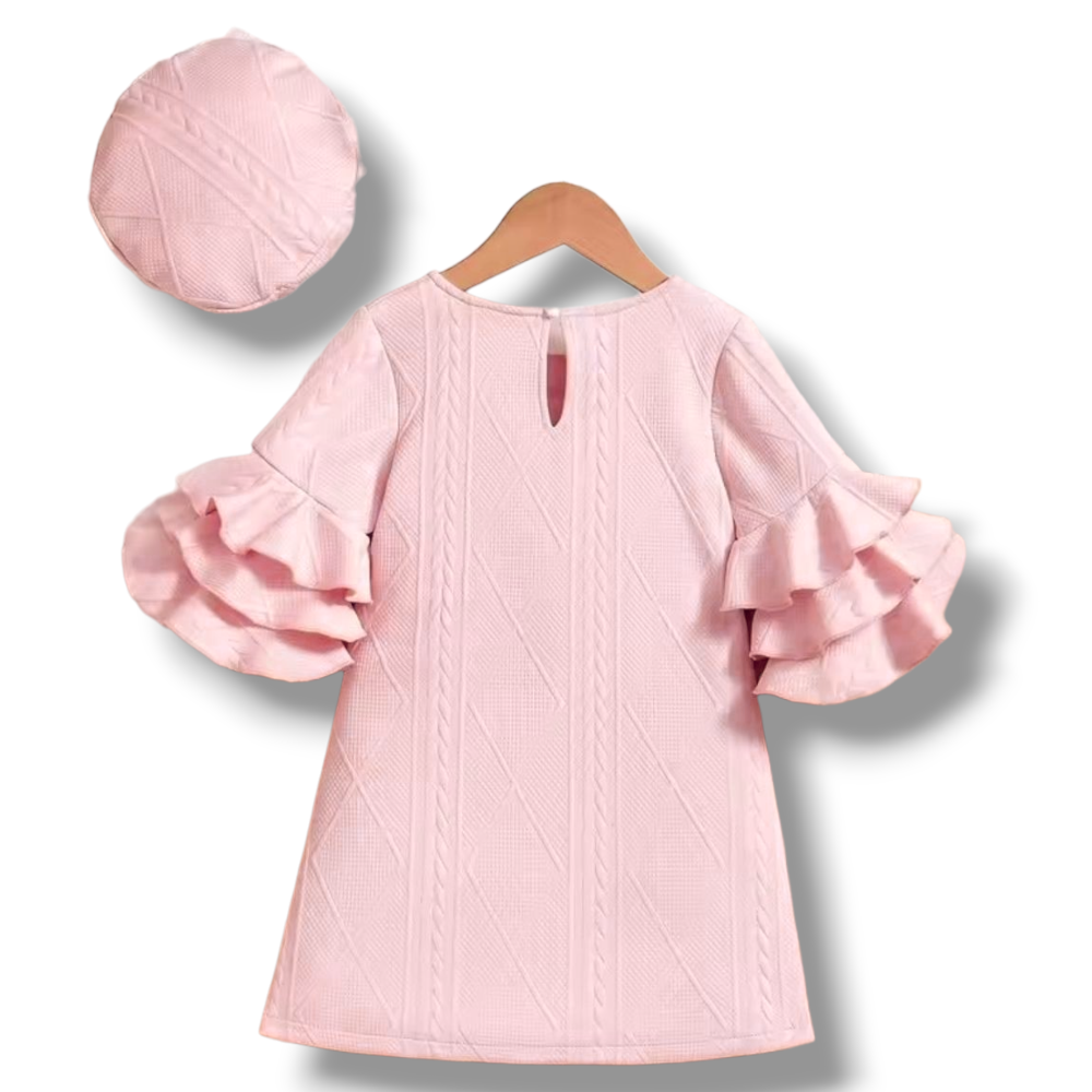 Fabric is cotton/poly spandex.Fits true to size for most.Includes dress & beret.