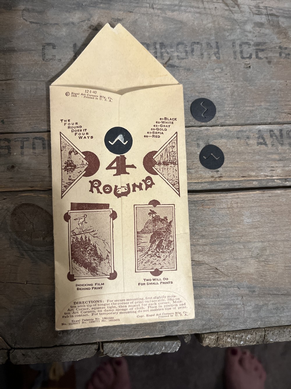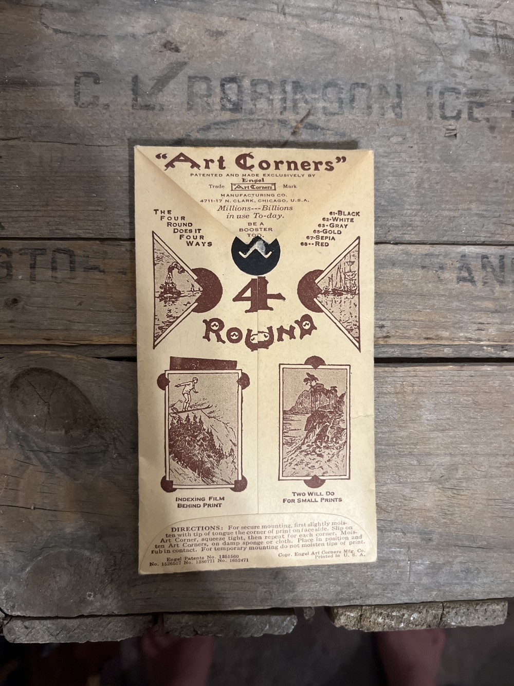 Antique package of Art Corners for mounting photographs, from 1928! This package is in very good condition and still has most of its original contents!