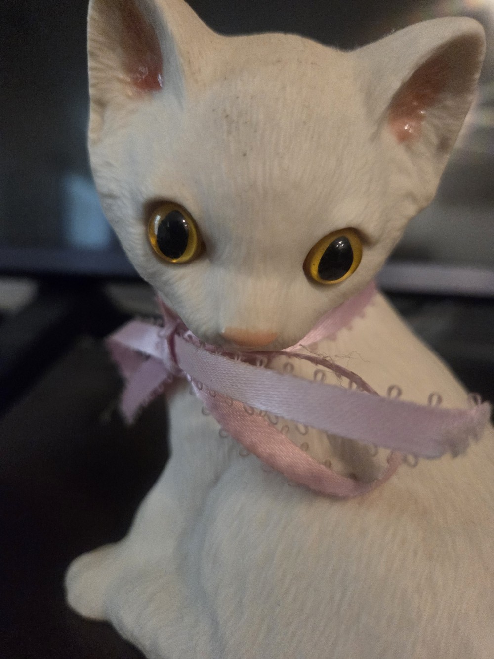 Vintage bisque ceramic kitty cat shelf sitter. Tail has been repaired. Hardly noticeable.