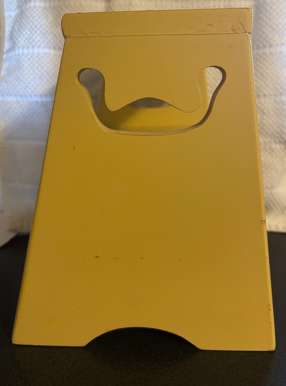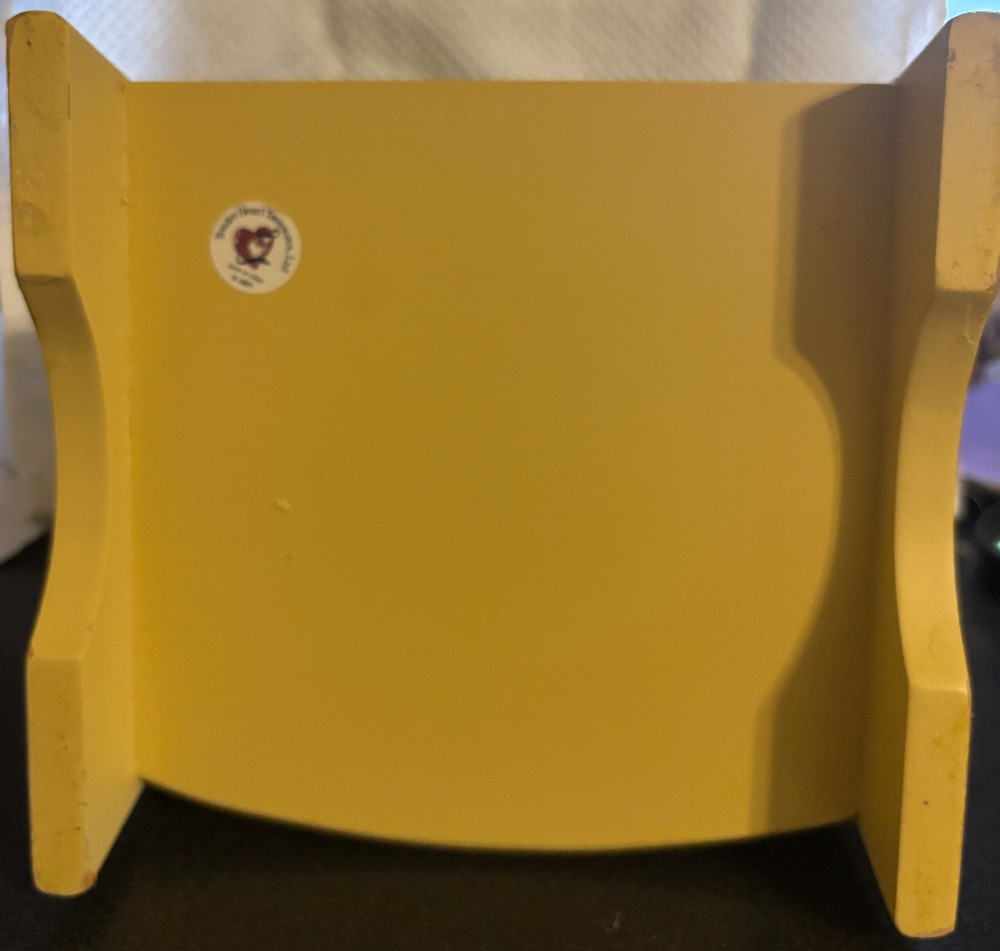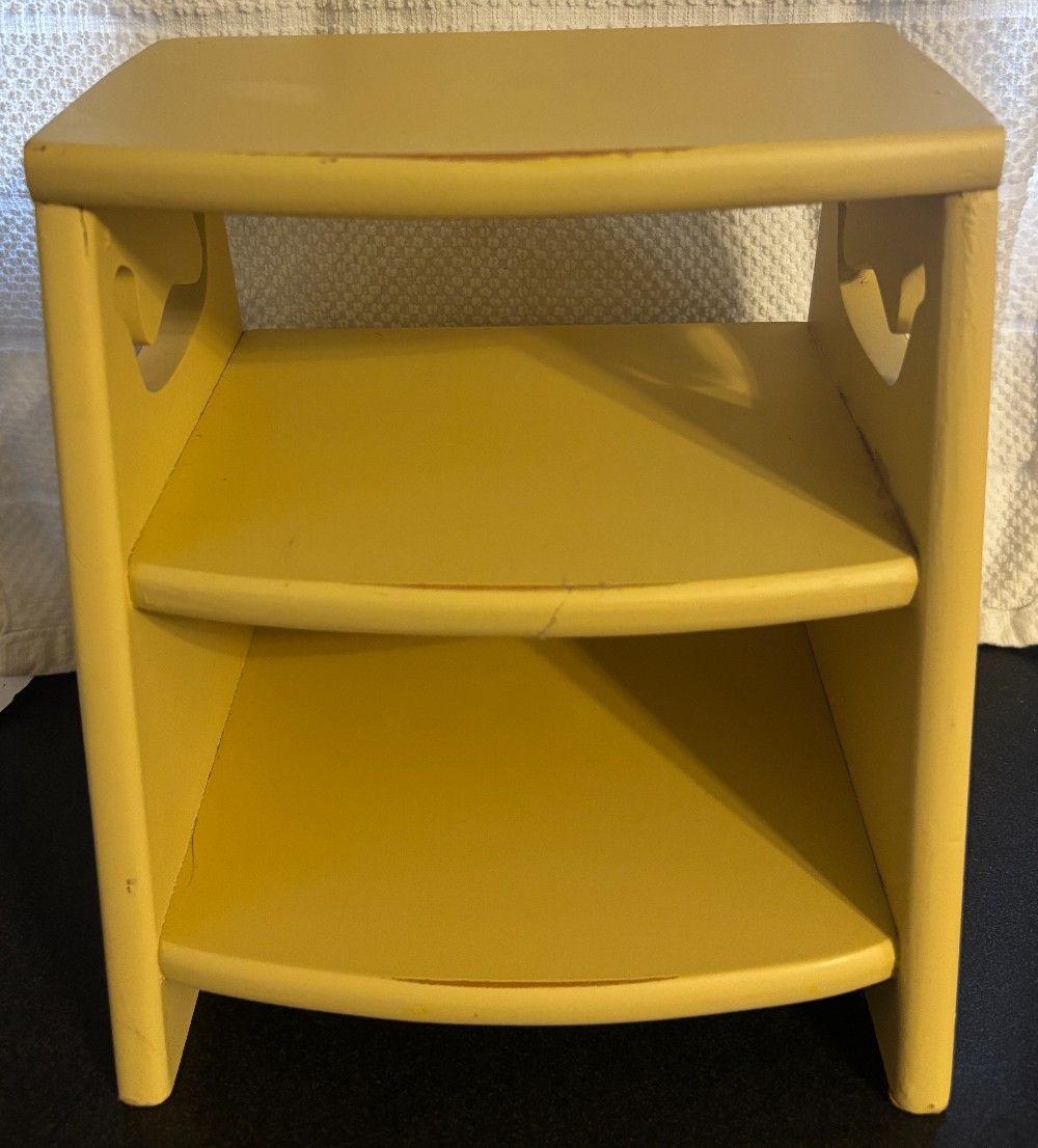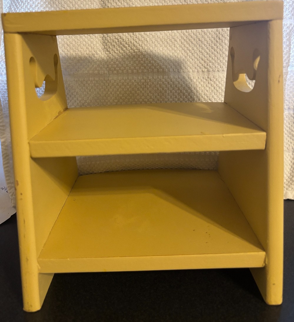 Mustard painted wood display stand/shelf. Tender Heart Treasures, Ltd. Made in China 19958.5"T x 7.75"L x 7"W