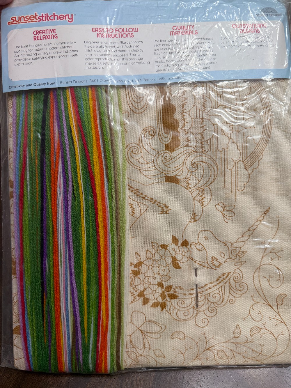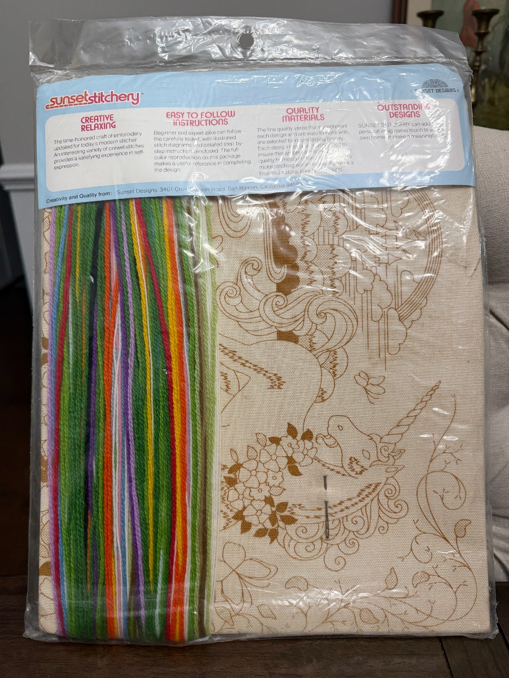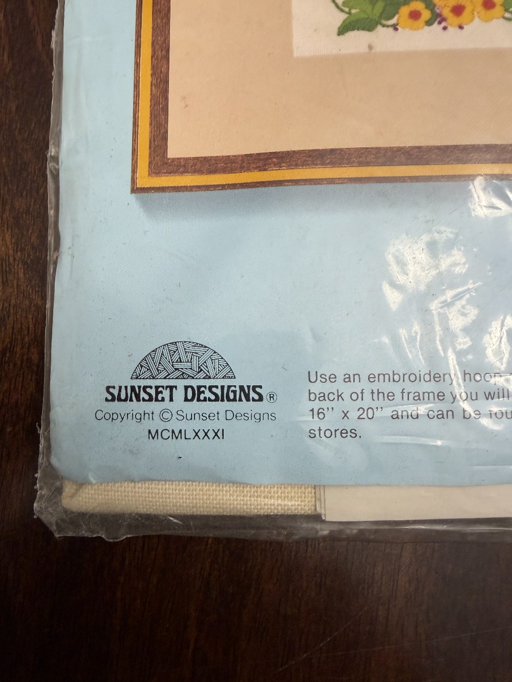 Vintage Sunset Stitchery Crewel Kit form 1981.