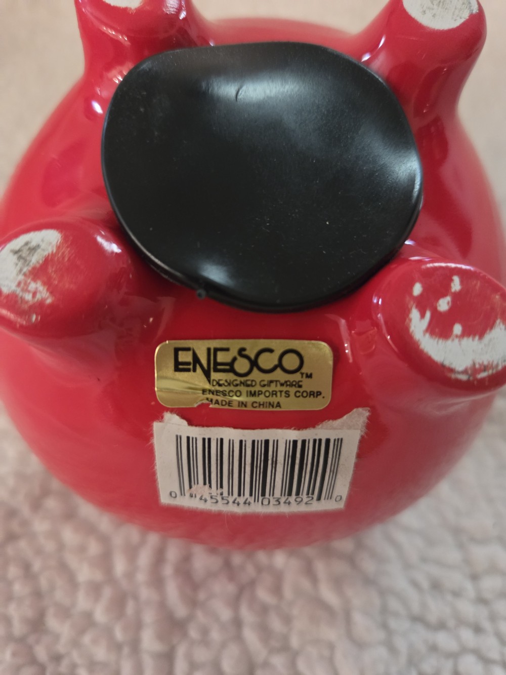 Vintage Enesco Red Piggy Bank. 4 inches.