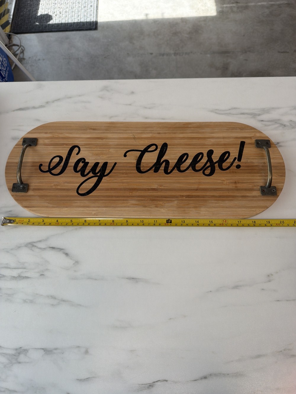 Home / Decor / Say cheese serving board with handles AS-IS