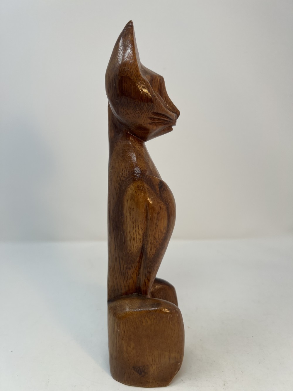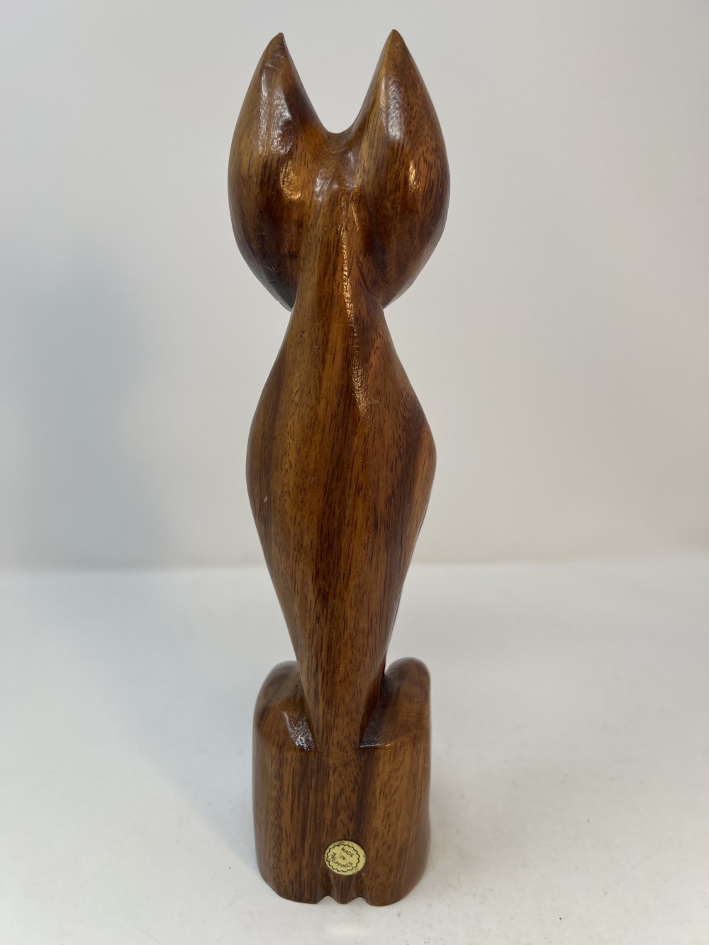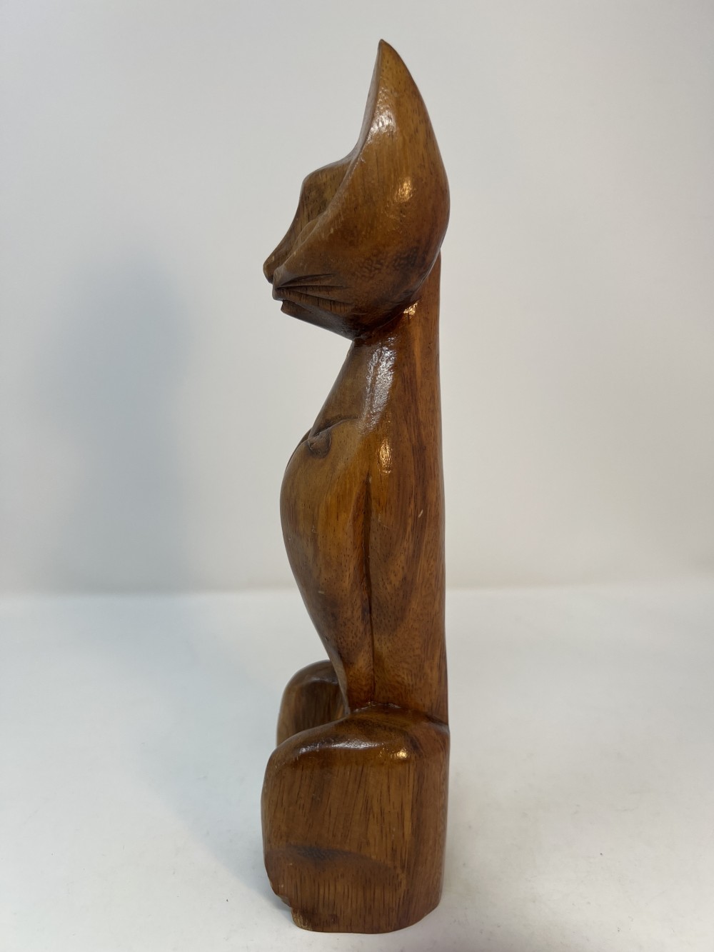 Vintage MCM Hand Carved Wood Siamese Cat; approx 10.5”