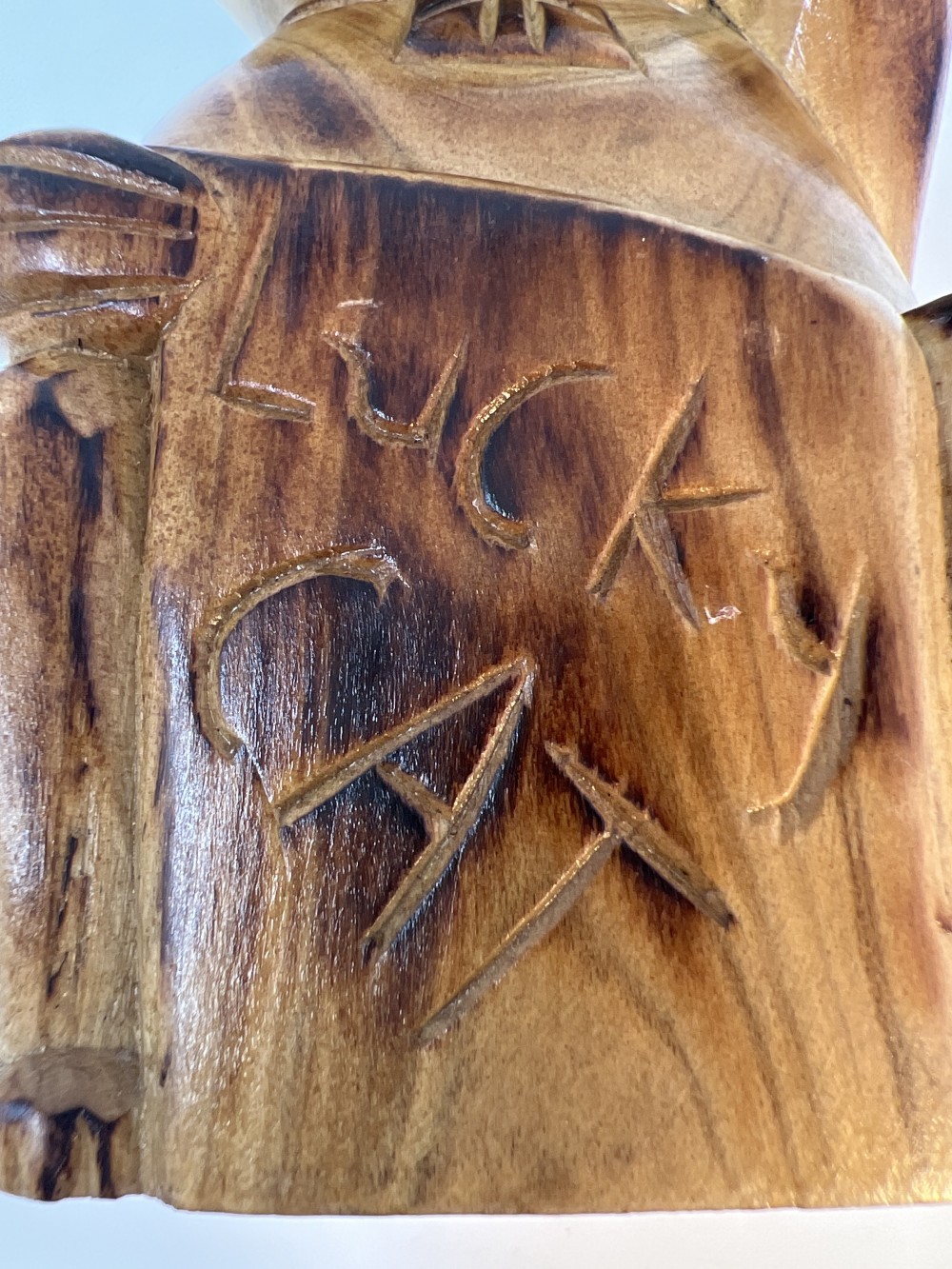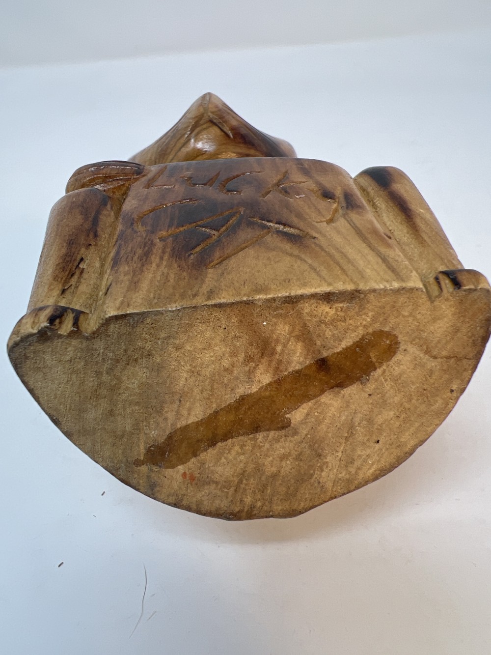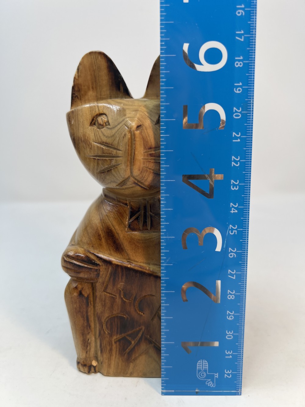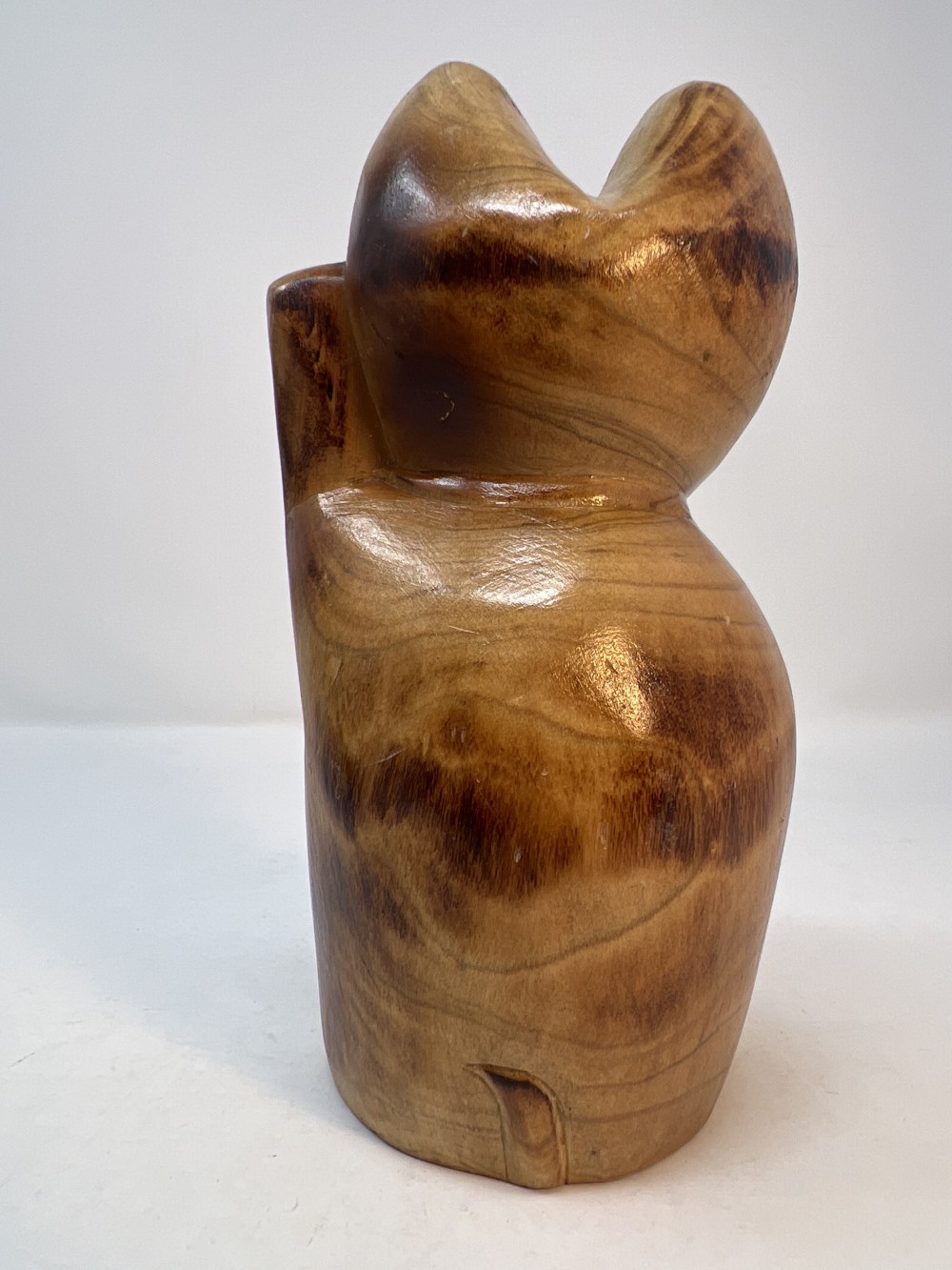 Vintage Lucky Cat Figure Hand Carved Wooden Statue; approx 6.5”