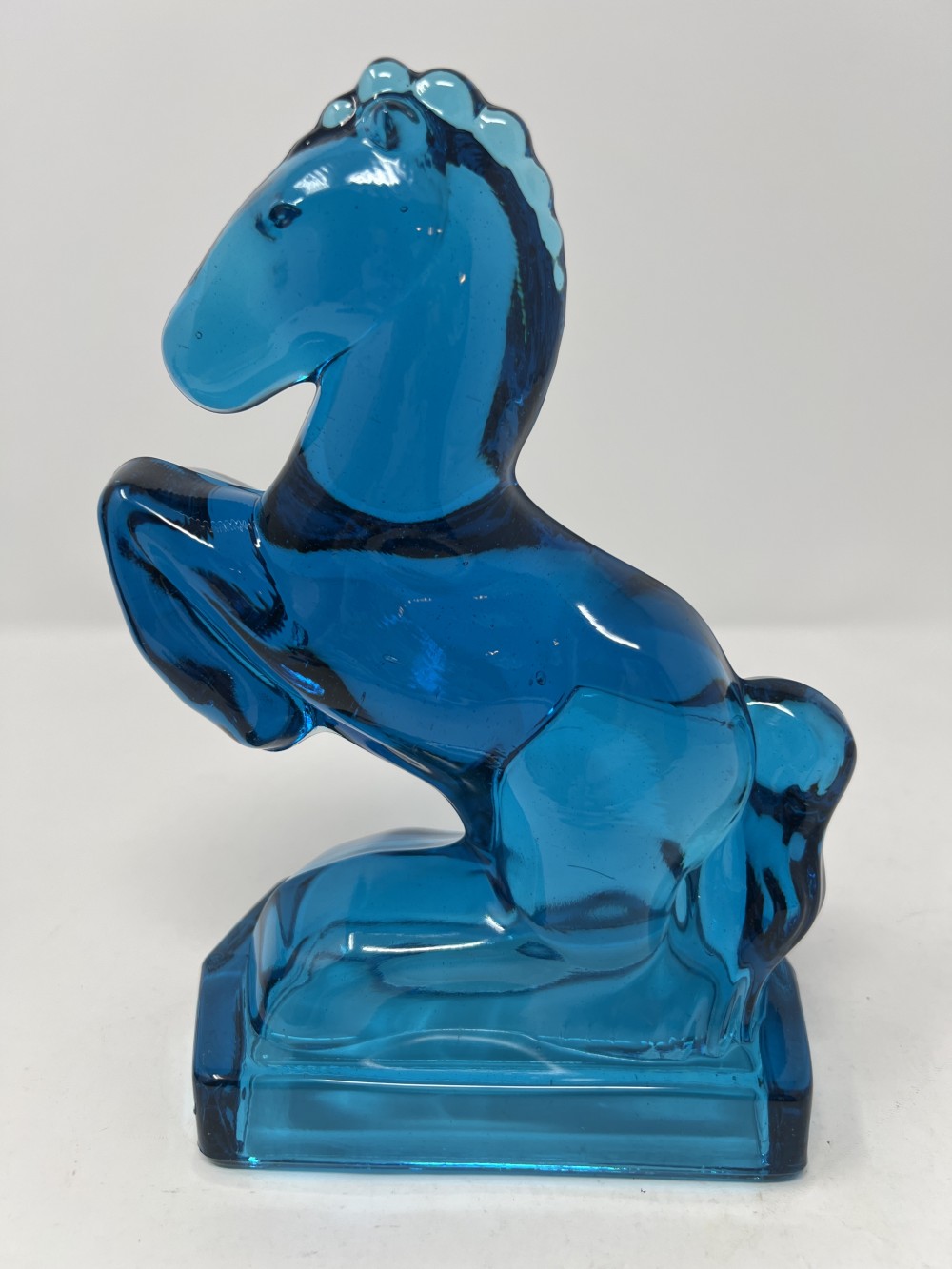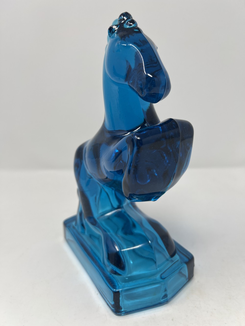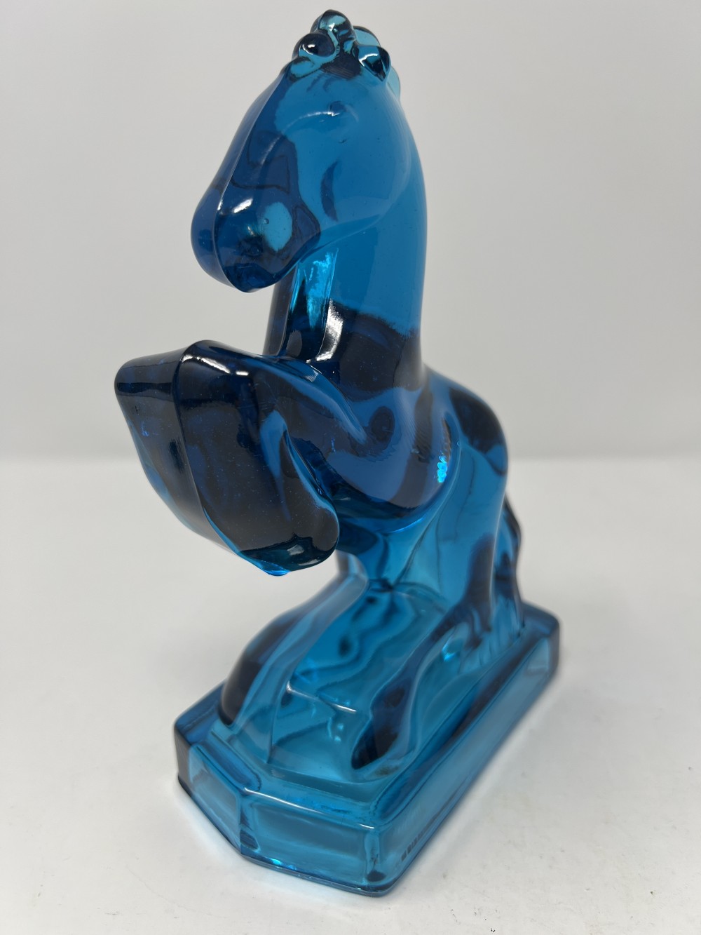 Vintage L.E. Smith Glass Aqua Blue Rearing Blue Horse Single Book End; approx 8” x 5.5” x 3”