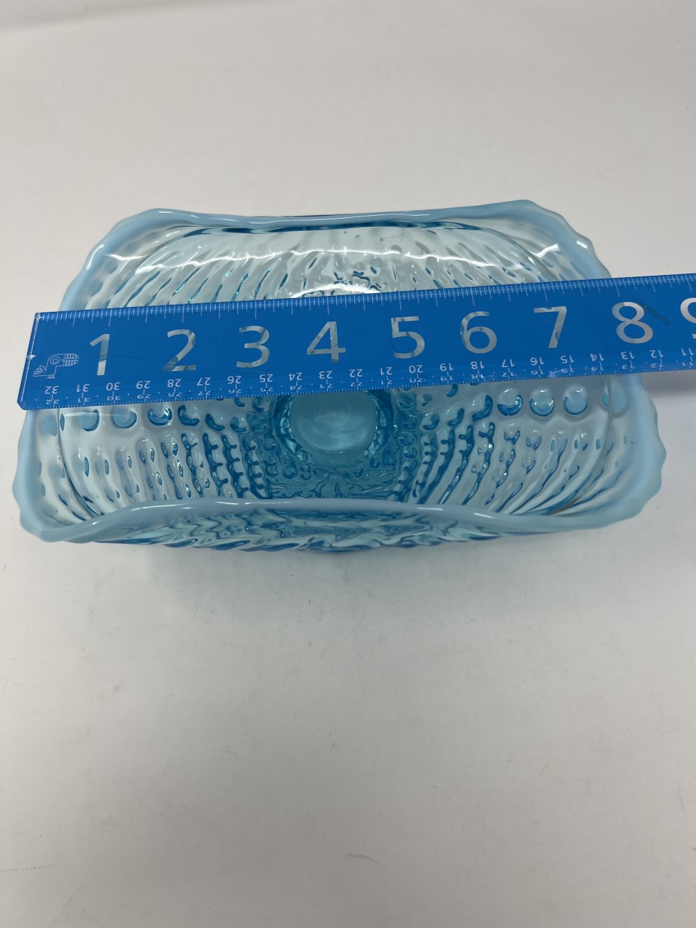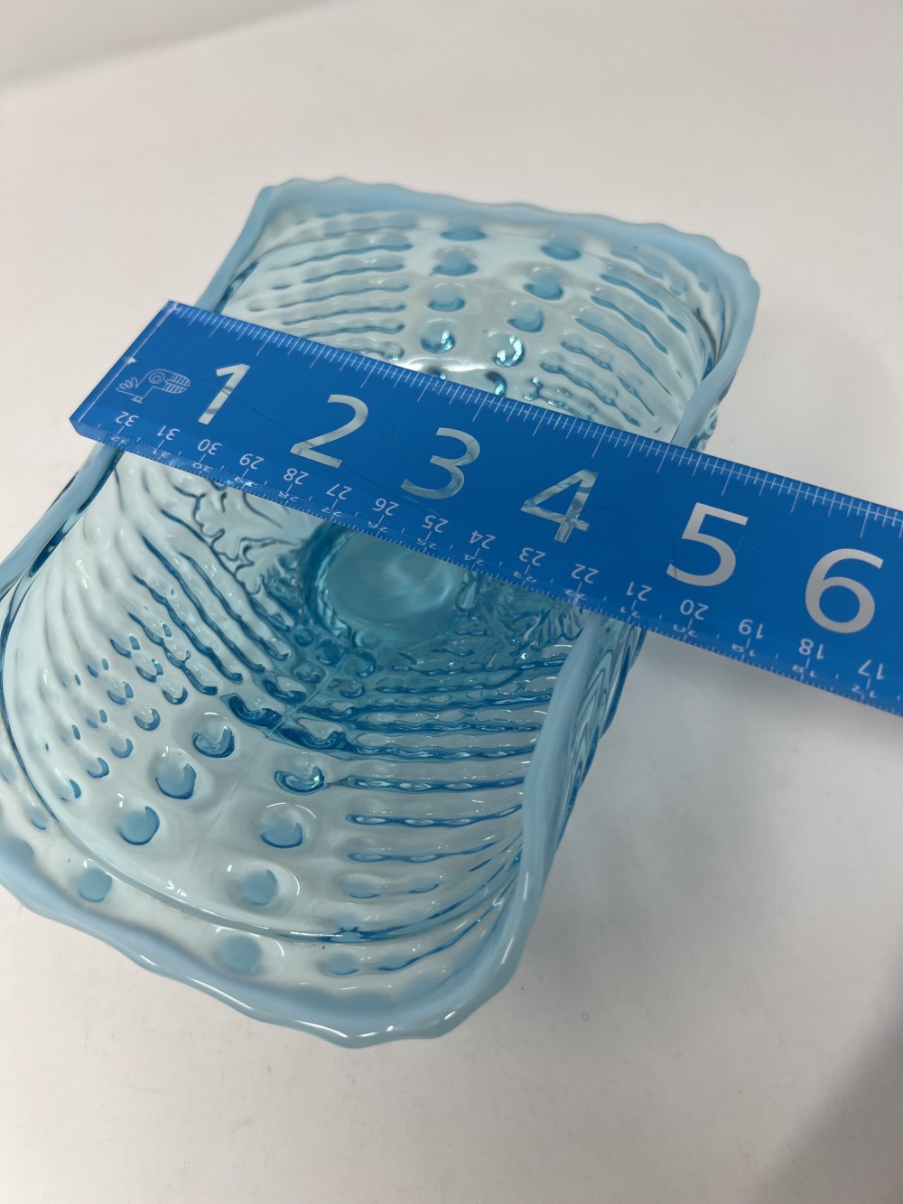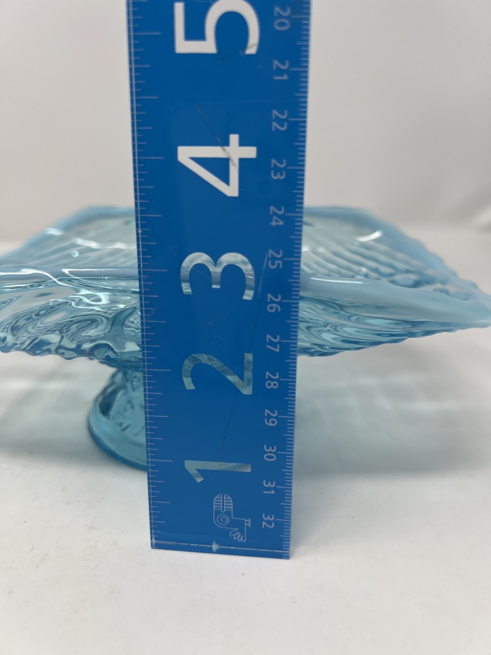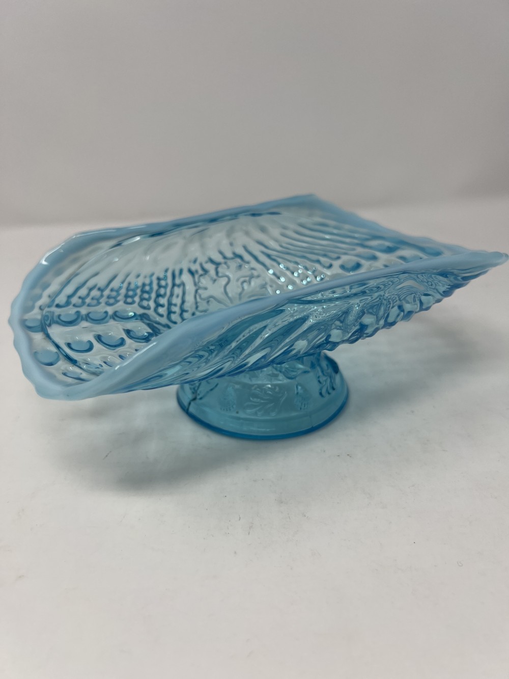 Northwood Argonaut Shell Nautilus Blue Opalescent Candy Dish; approx 8” x 5” x 3”