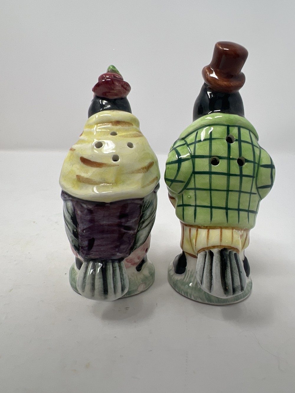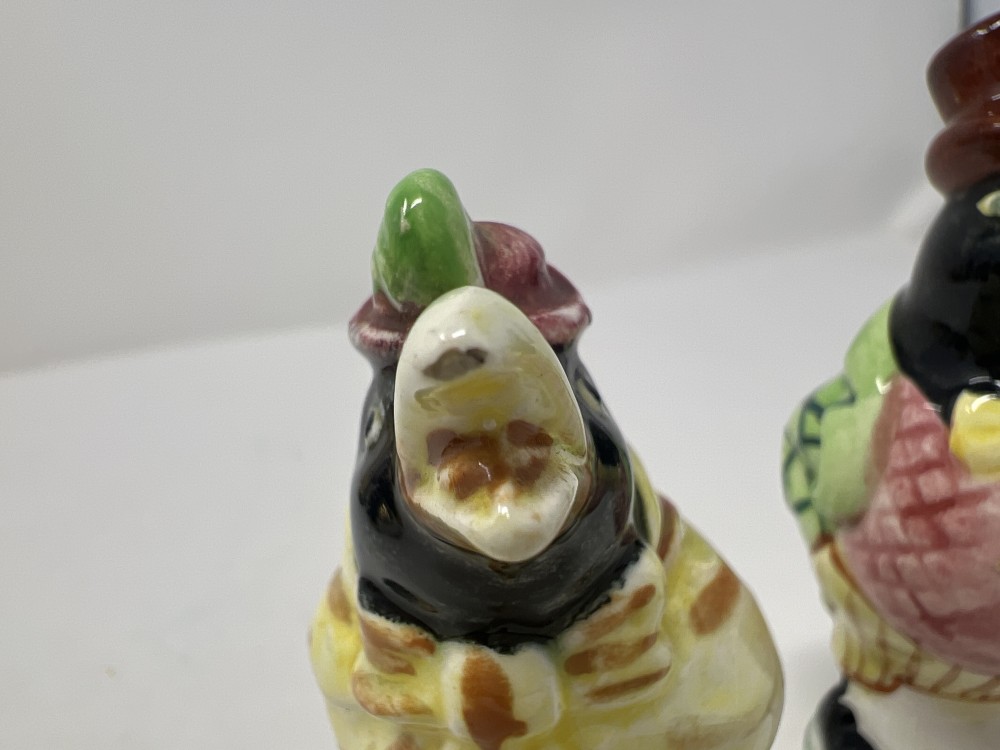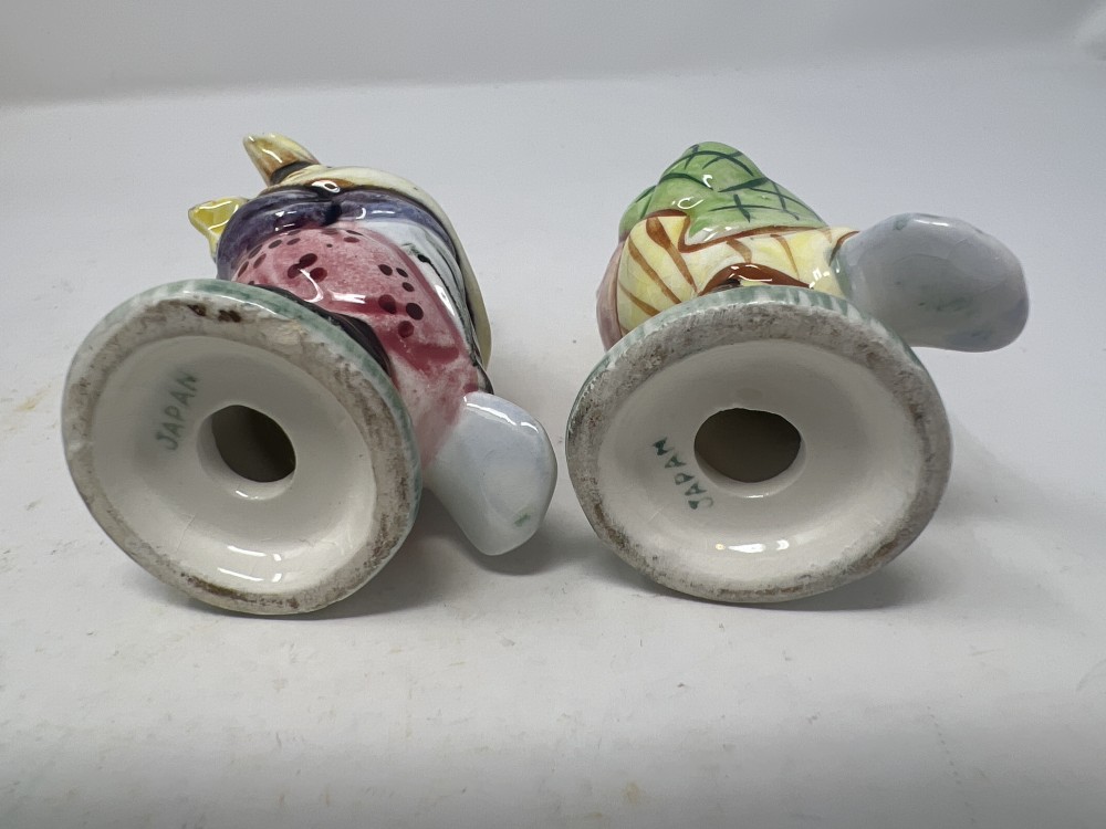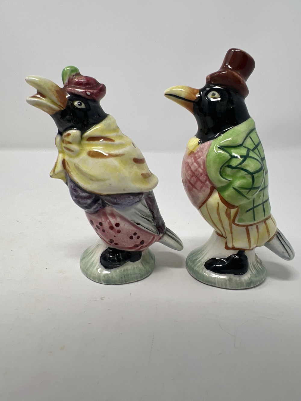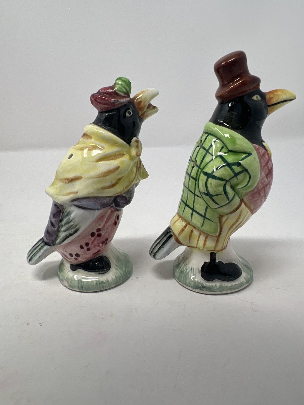 Vintage Crow Couple Salt & Pepper Shaker Set; Japan; approx 3.5”; minor chip on her beak; missing stoppers