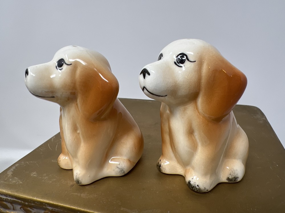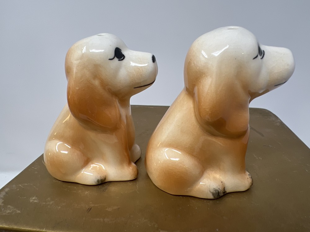 Puppy Salt & Pepper Shaker Set; approx 3”; missing one stopper