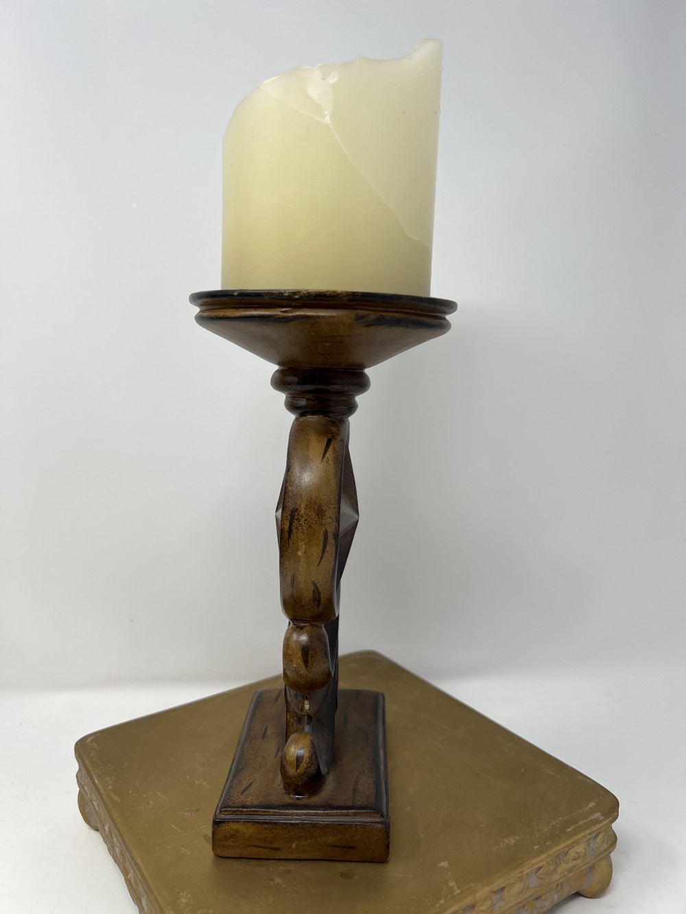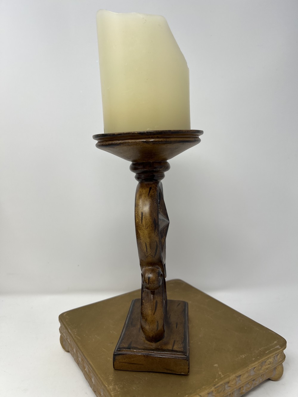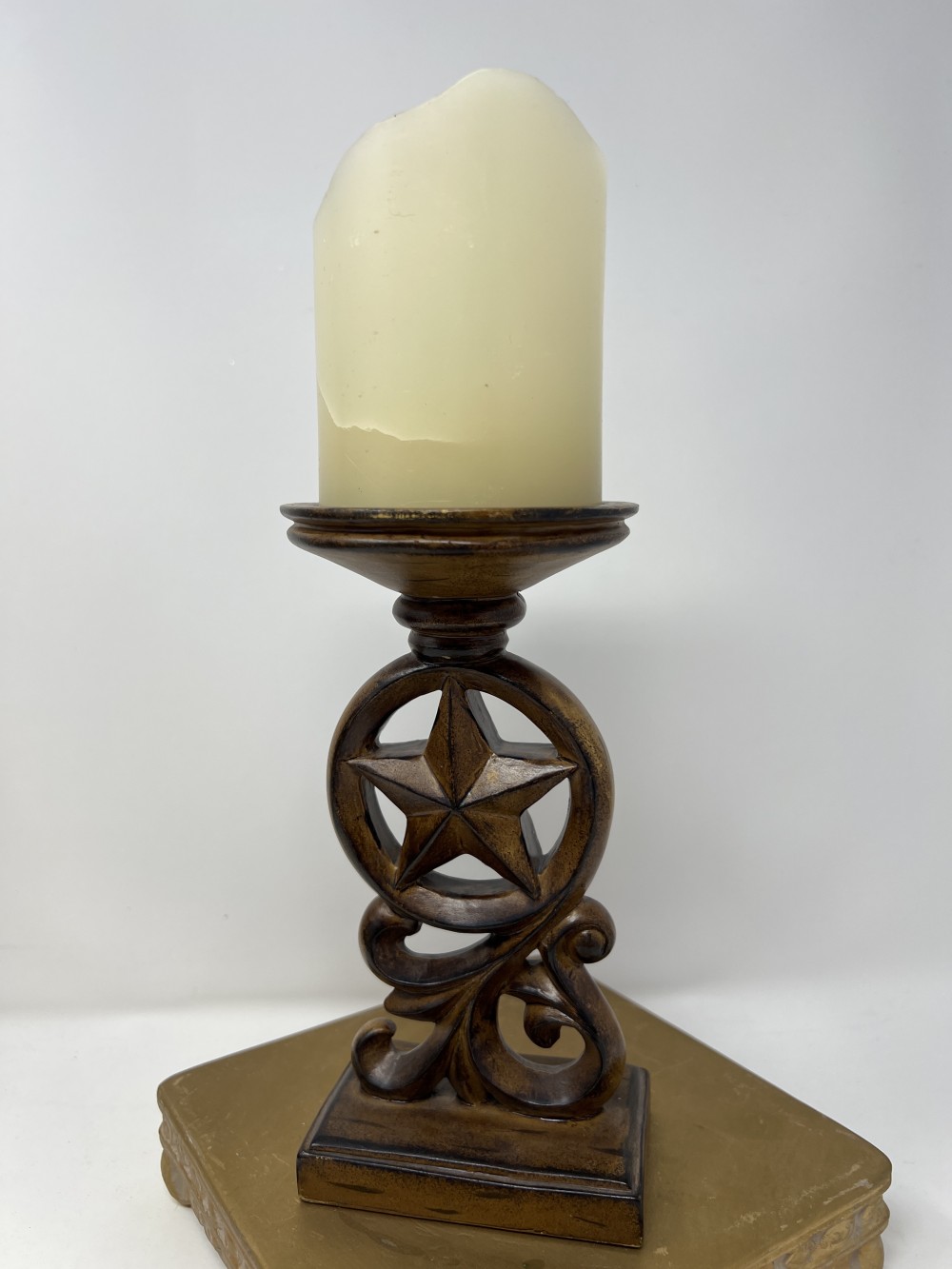 Rustic Western Star Candle Holder Faux Wood Texas Ranch Decor; approx 7.5” tall; includes faux candle (needs battery)