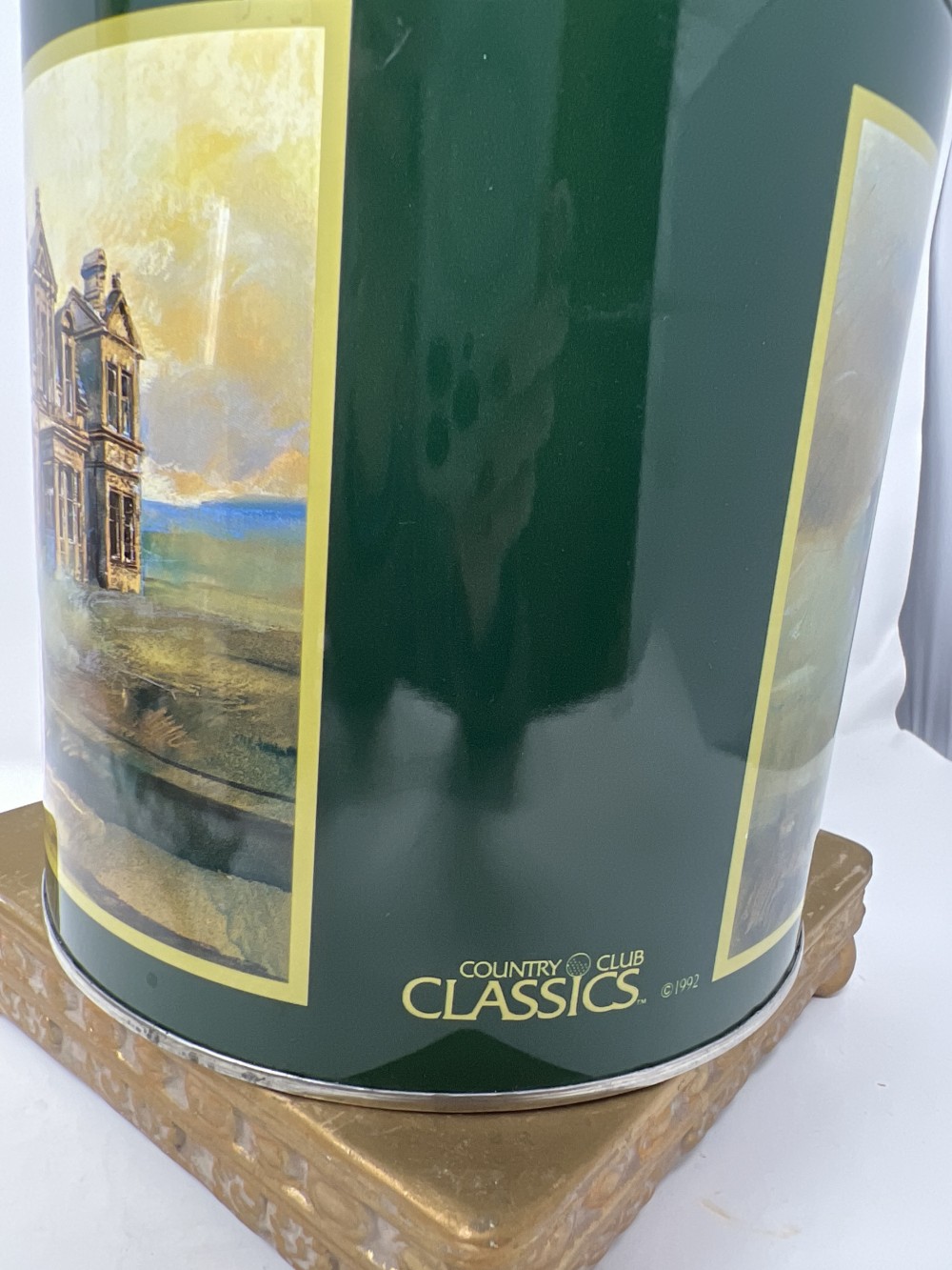Vintage Decorative Golf Tin; Country Club Classics 1992; approx 7.5” tall x 6.5” wide; Riser, Shelf Decor;
