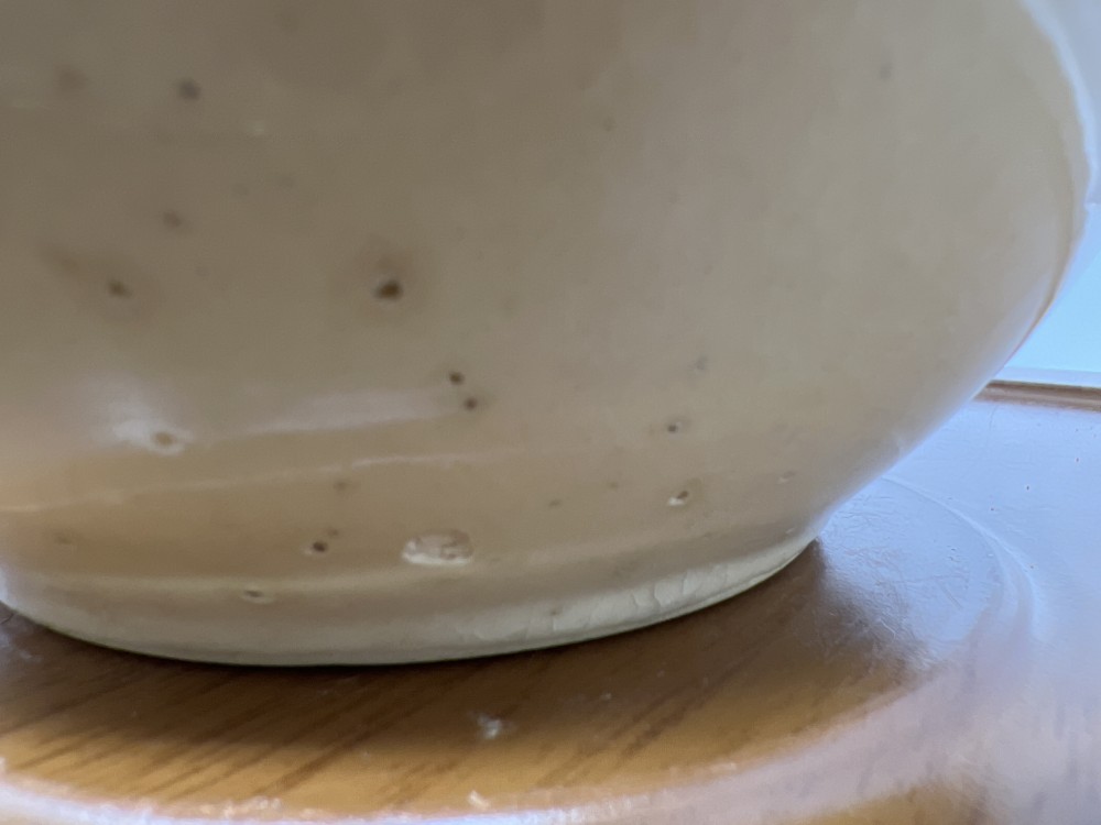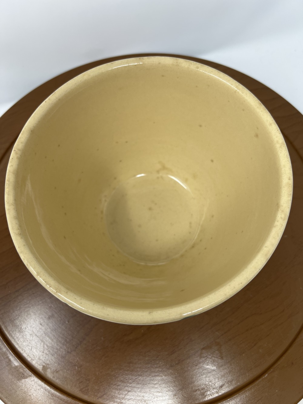 Watt Pottery Apple Bowl USA Ovenware 5" Deep 7.5" Diameter; Aged Patina and pock mark as shown in photos