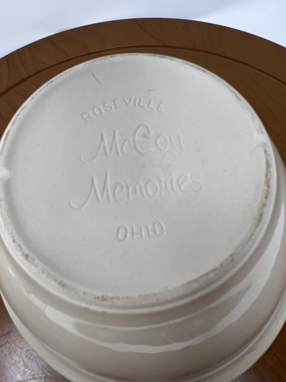 Vintage McCoy 8" Mixing Bowl Pink Blue Stripes USA Stoneware Pottery; as shown in photos